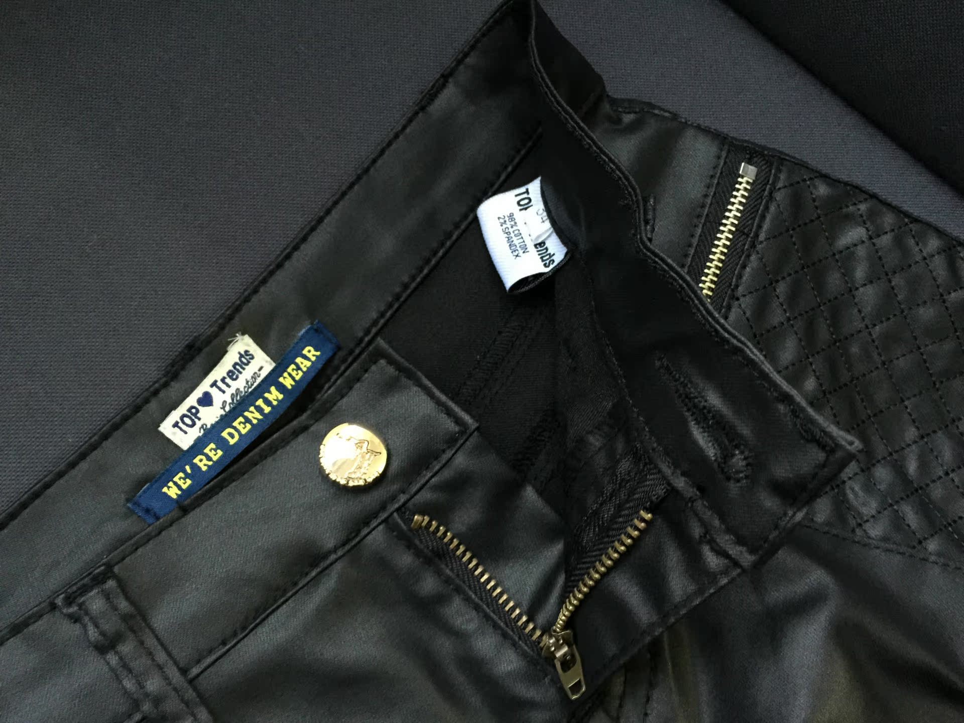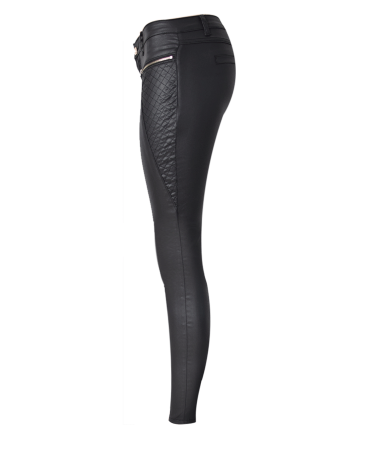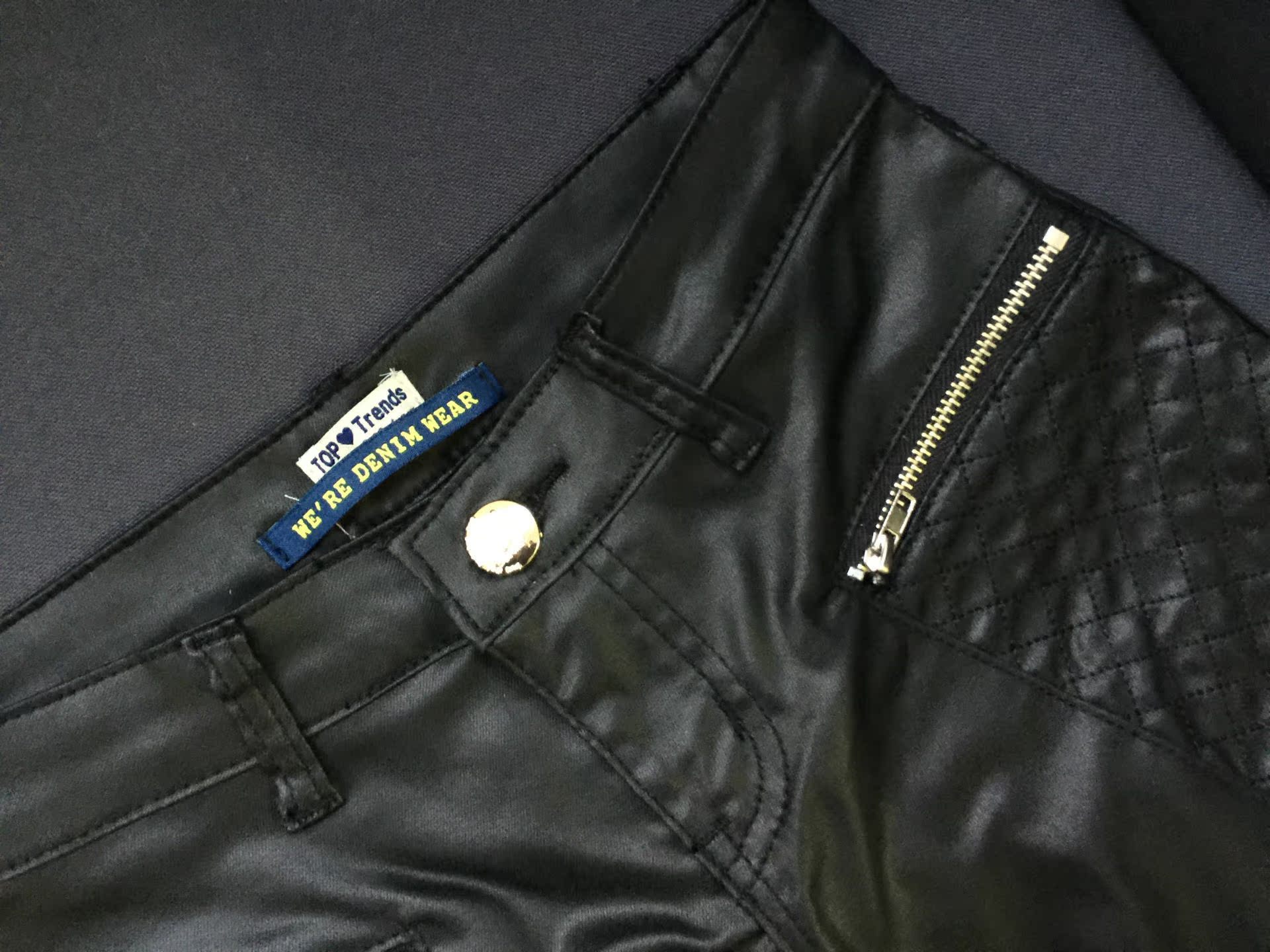 Fall Winter Popular Black Low Waist Coating Denim Skinny Pants Faux Leather Pants