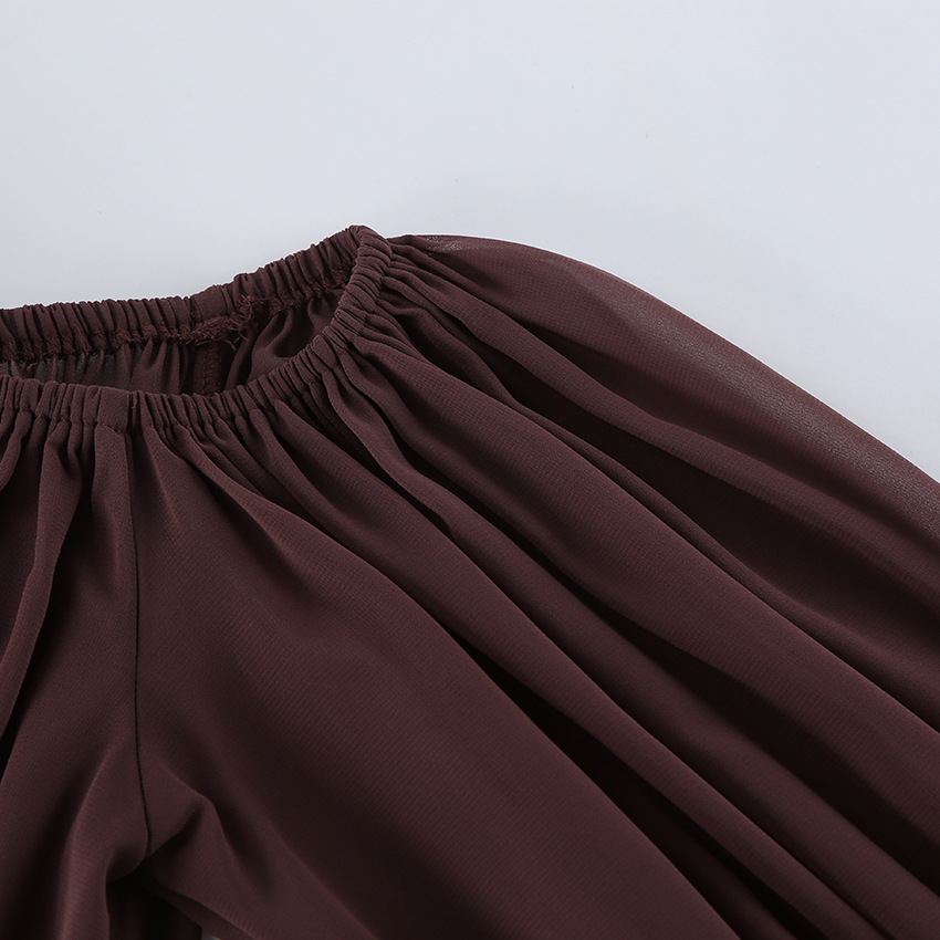 Fall Winter Retro Elegant Boat Neck Brown Chiffon Loose Sexy off the Shoulder Top Ruffled Shirt