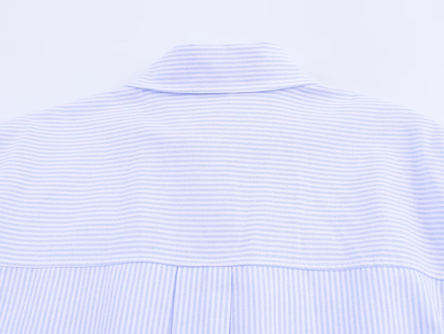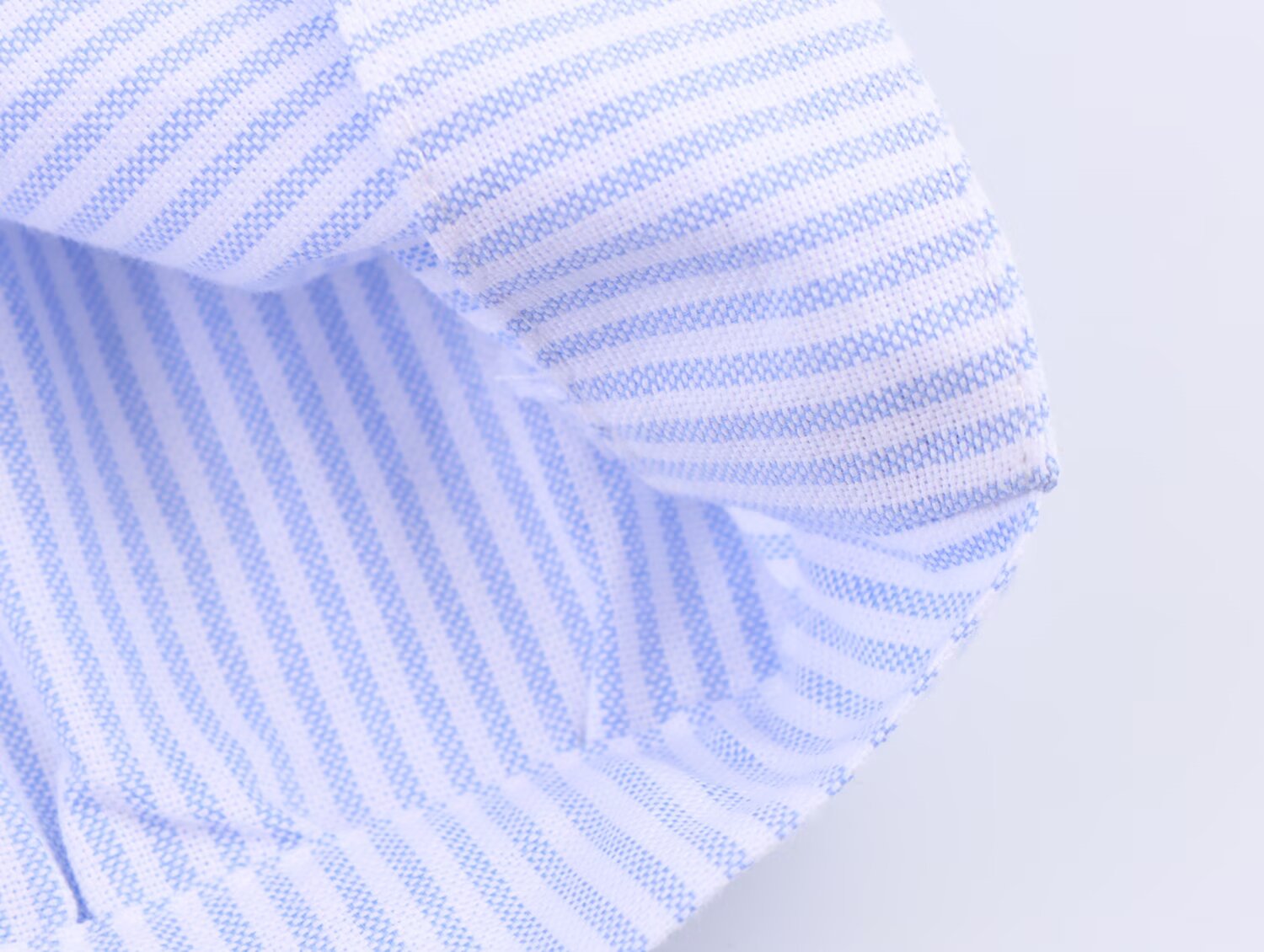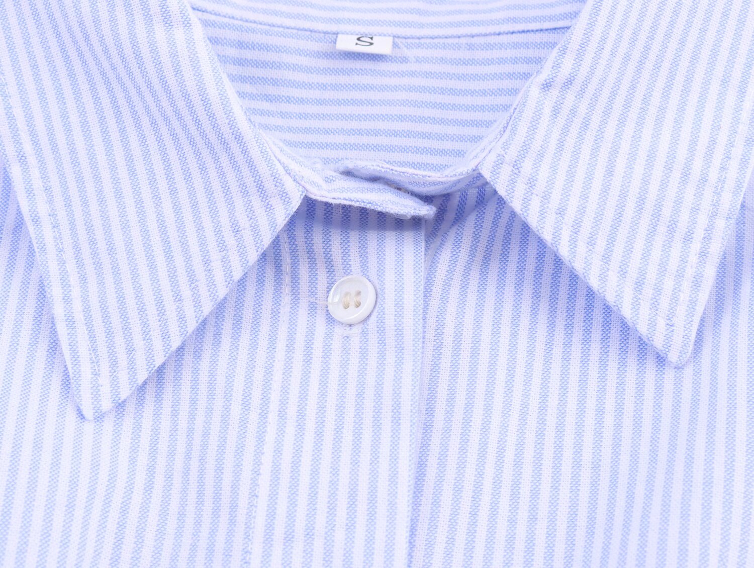 Fall Women Clothing Casual Slimming Fashionable All Match Waist Pleated Striped Short Shirt