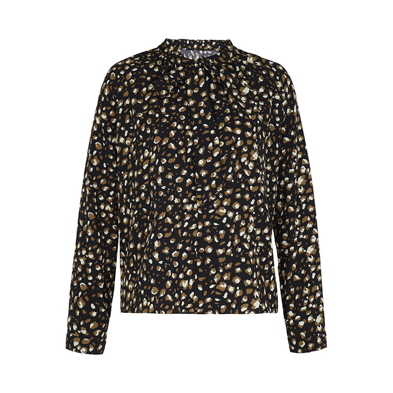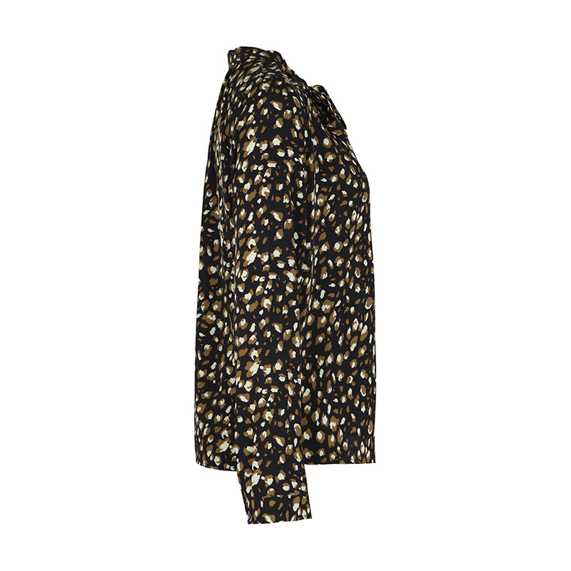 Fall Women Clothing Long Sleeve Printed Bow Shirt