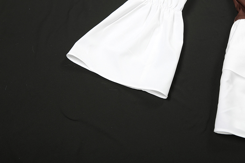 Fall Women Clothing Sexy Contrast Color off Shoulder Slim Fit Slimming Puff Sleeve Dress