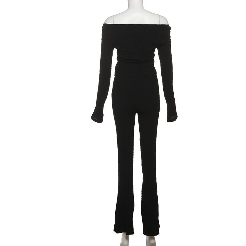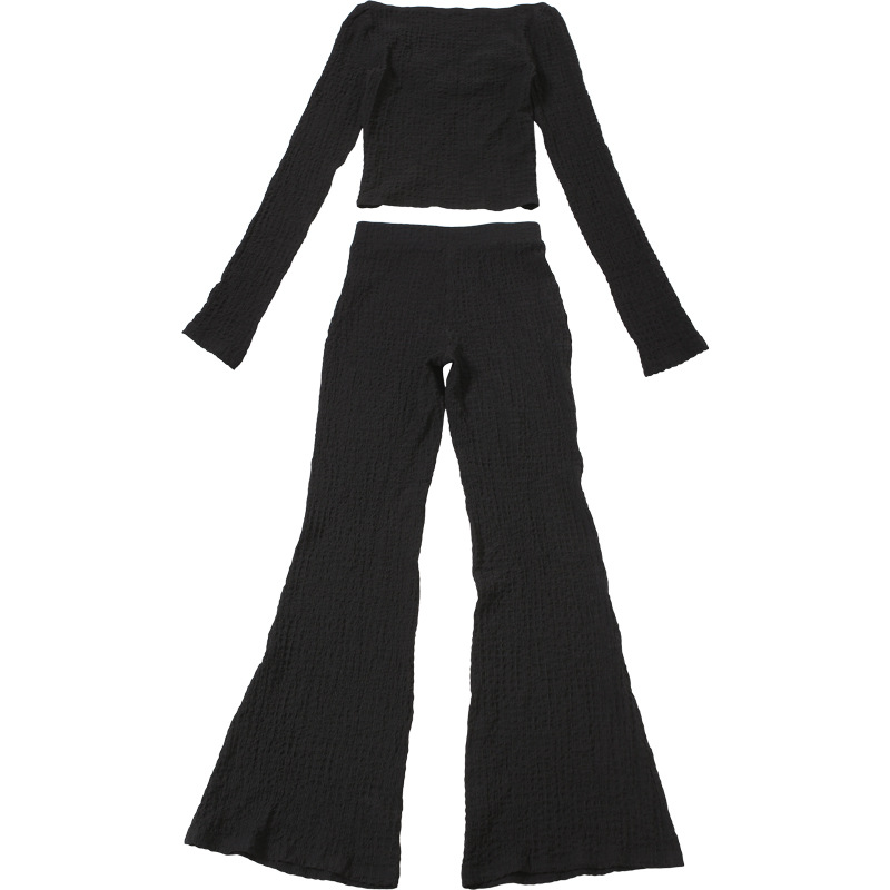 Fall Women Clothing Sexy Cutout Solid Color Long Sleeve Slim Fit Slimming Bootcut Pants Two Piece Set