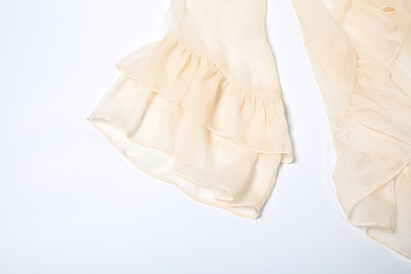 Fall Women Clothing Sexy Hanging Collar See through Ruffled Long Sleeve Smock Top Women