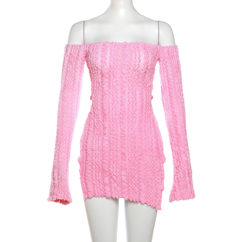 Fall Women Clothing Sexy off the Shoulder Backless Knitted High Waist Slim Short Dress Women