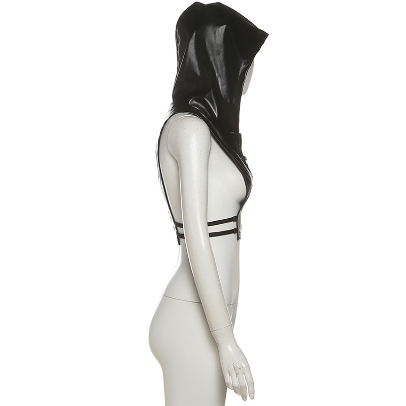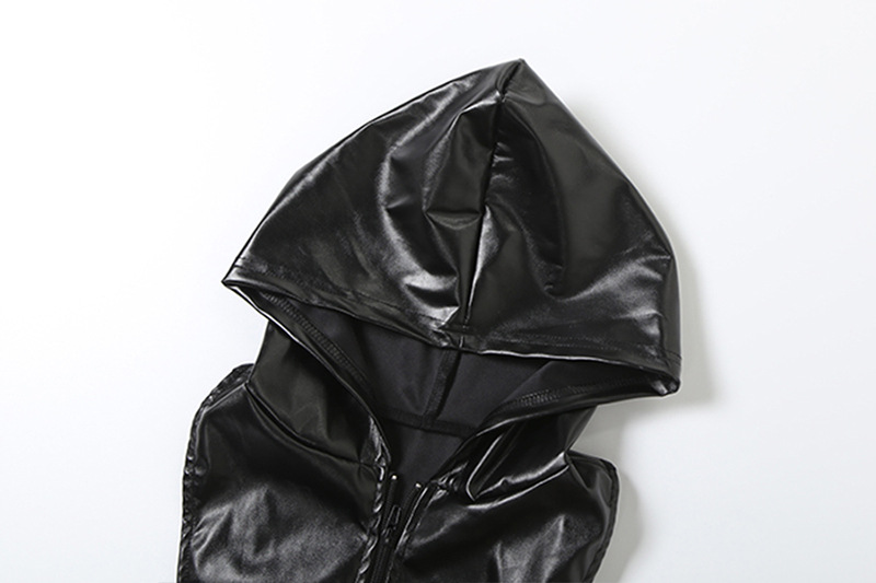 Fall Women Clothing Sexy Sexy Cropped Zipper Hooded Side Hollow Out Cutout Faux Leather Vest Women