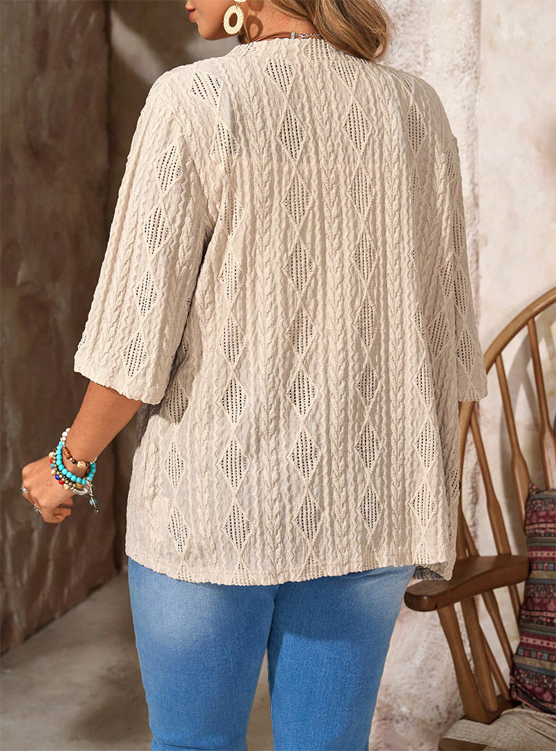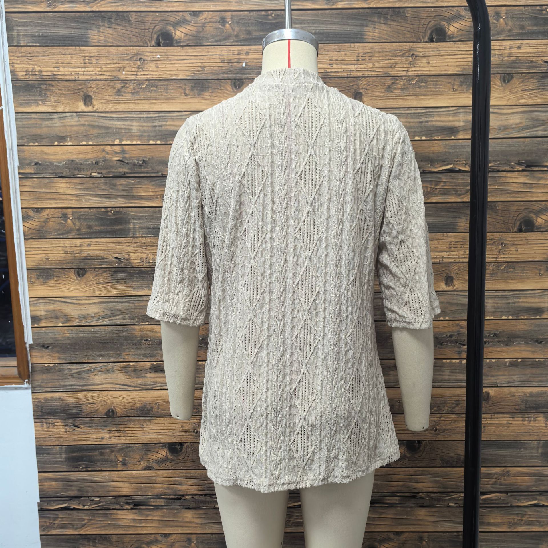 Fall Women Hollow Out Cutout Cardigan Solid Color Top
