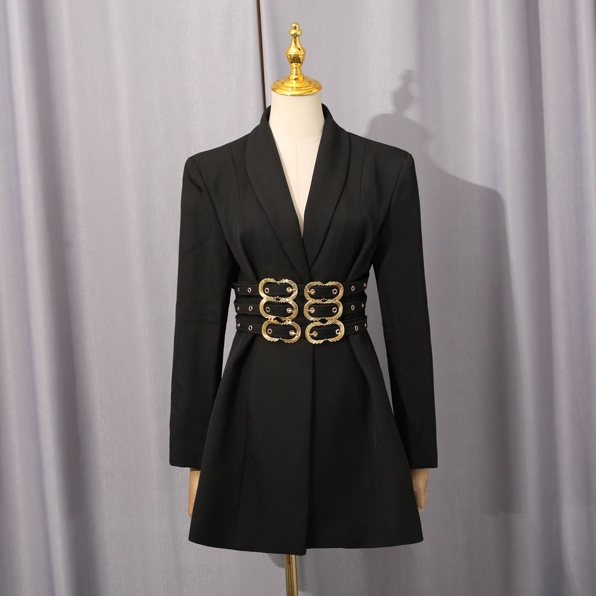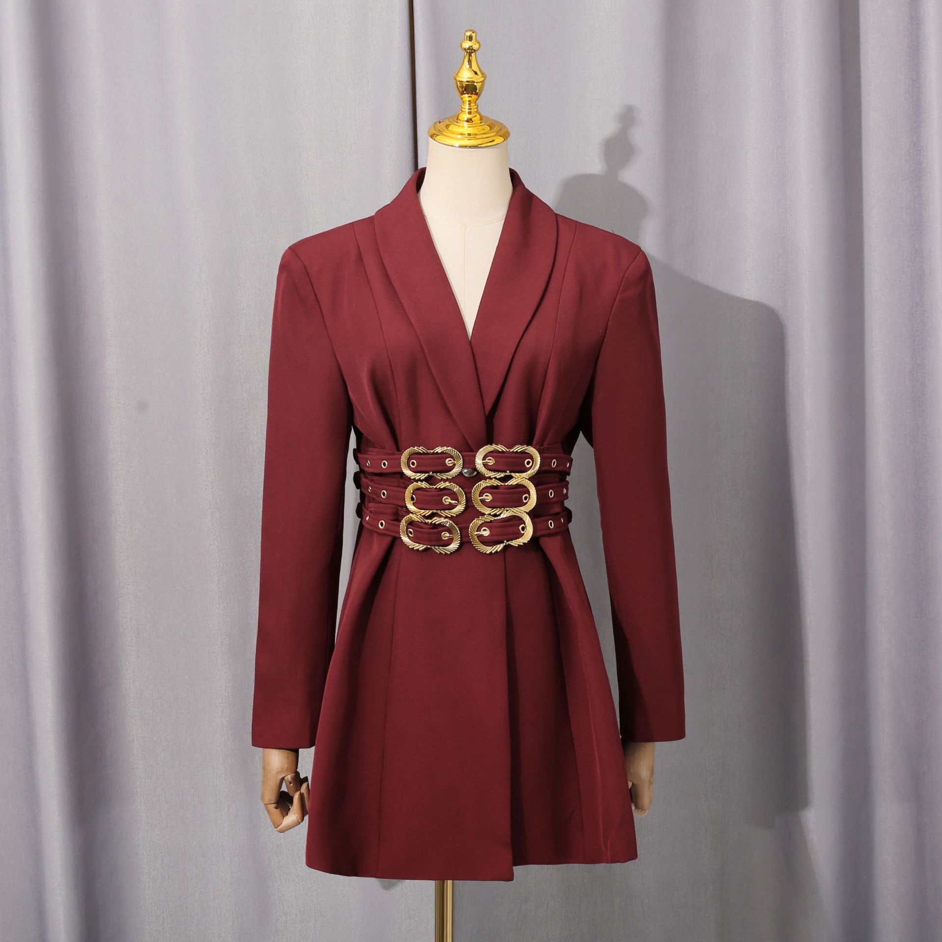 Fashionable Blazer Women Autumn Office Belt Slim Design Solid Color Small Blazers