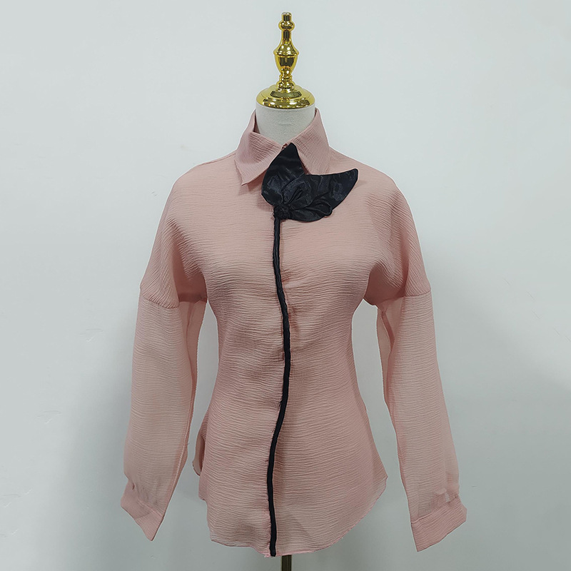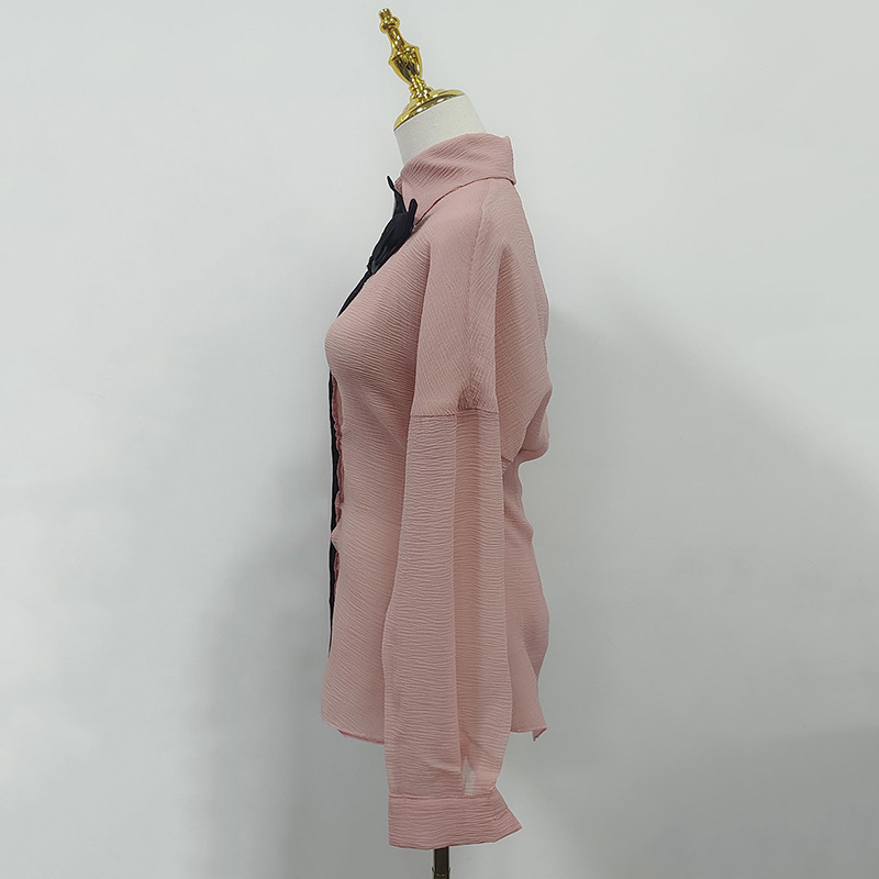 Fashionable Casual Shirt Women Autumn Sweet Lantern Sleeve Stitching Design Loose Top