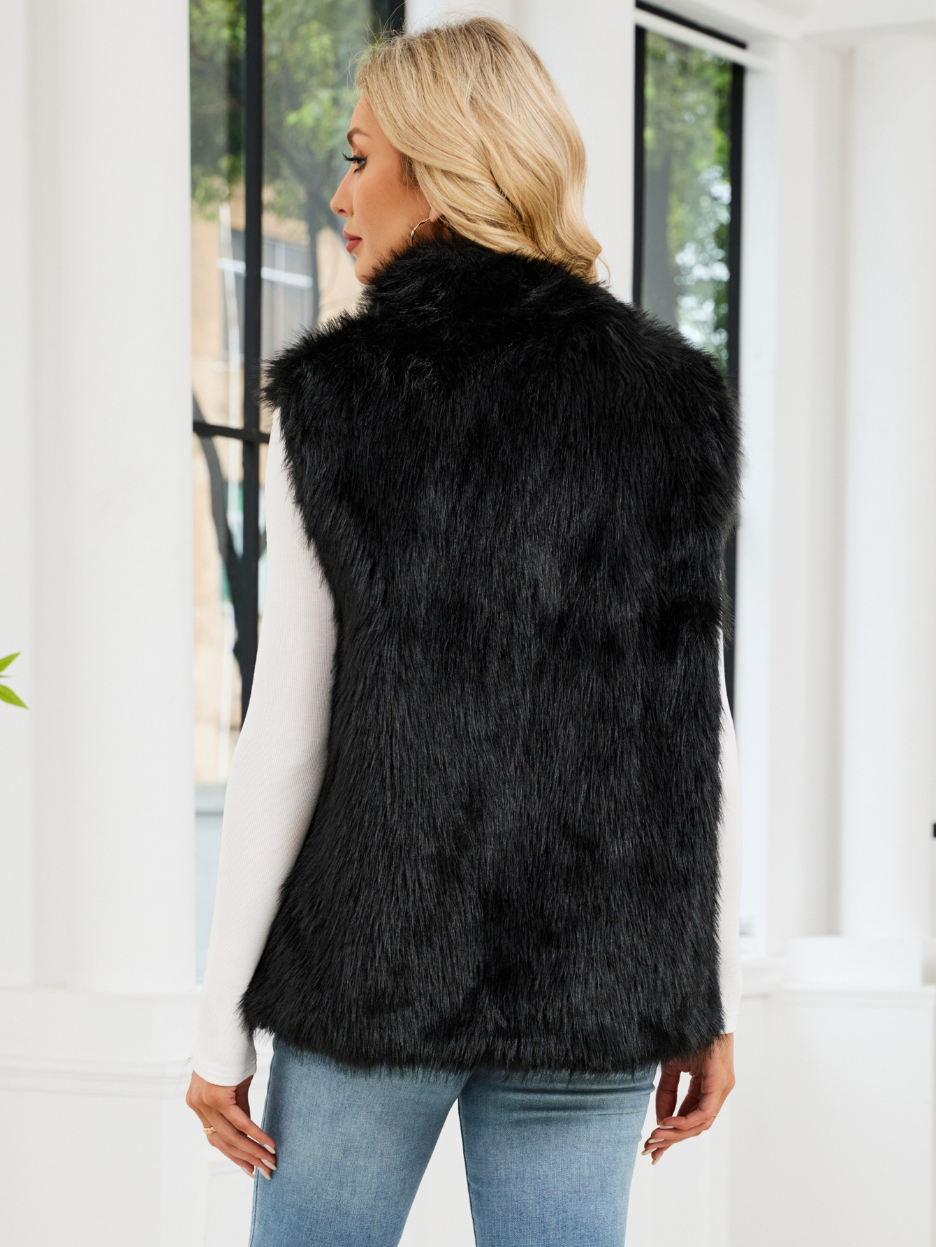 Faux Fur Stand Collar Vest Faux Fur Warm Vest Women Artificial Fur Vest