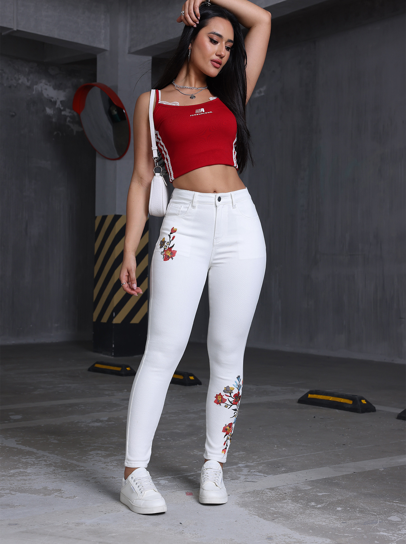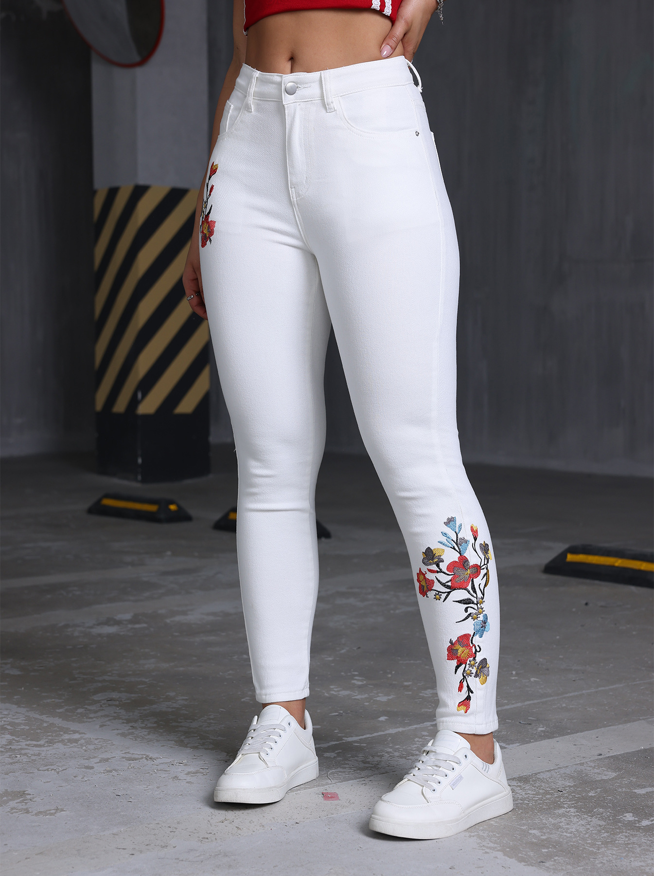 Floral Embroidered Skinny Stretch Jeans All Matching Casual Women Denim Skinny Pants