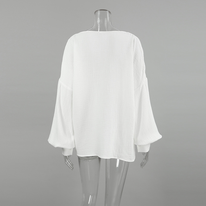 French Bubble Crepe Lantern Sleeve Loose Casual Shirt Autumn Arrival Top Women