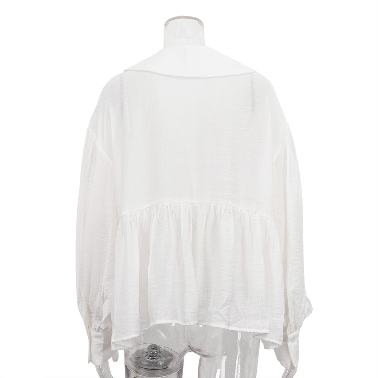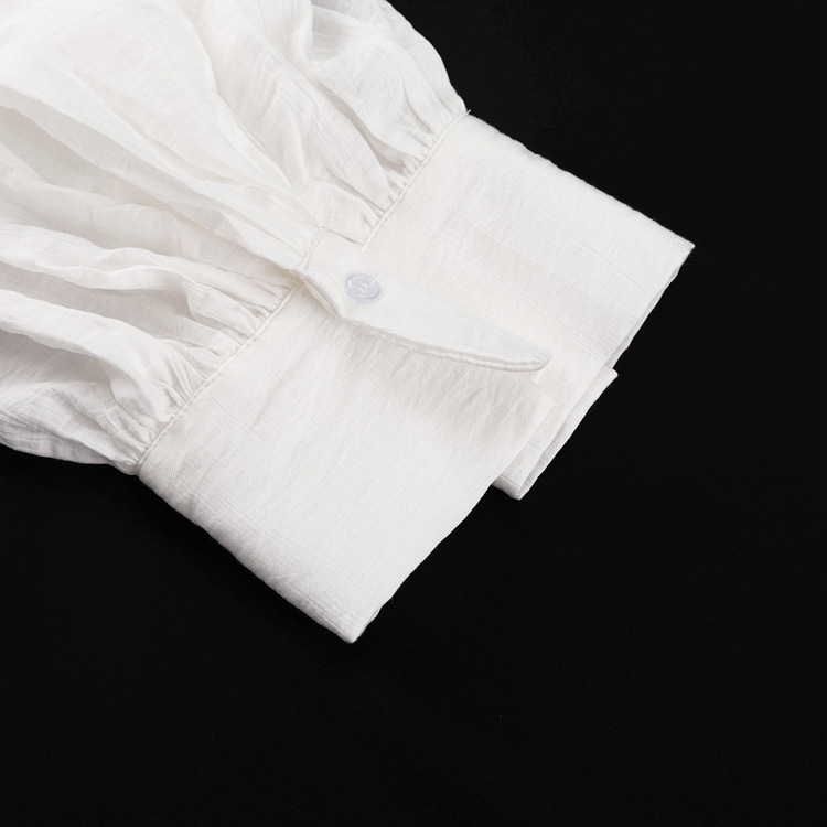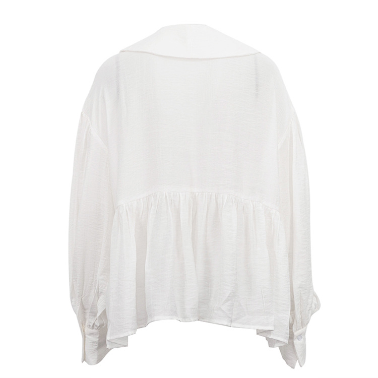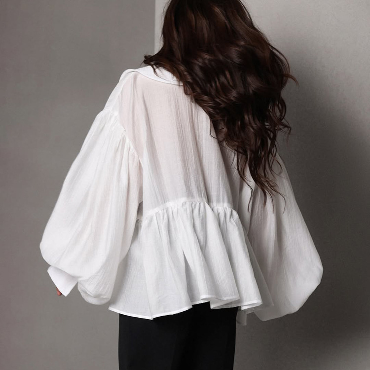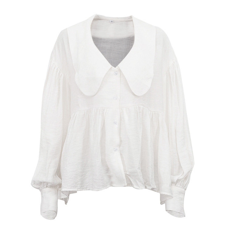 French Casual White Shirt Autumn Doll Face Puff Sleeve Loose All Matching Cardigan Shirt
