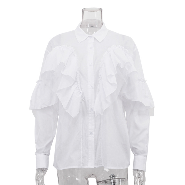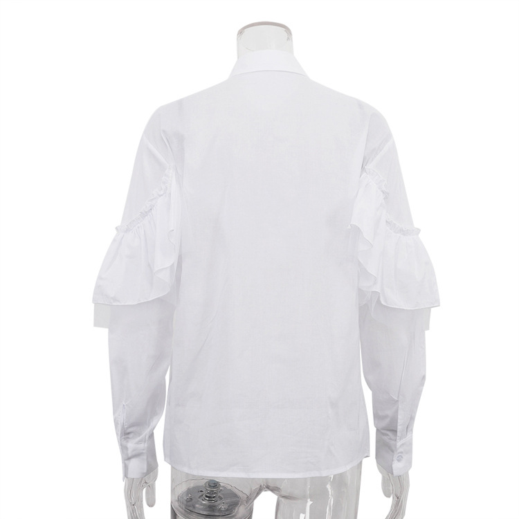 French Design Ruffled White Shirt Women Autumn Polo Collar Long Sleeve Office All Match Top
