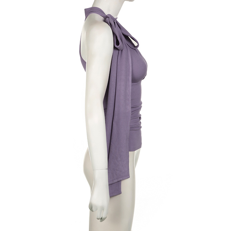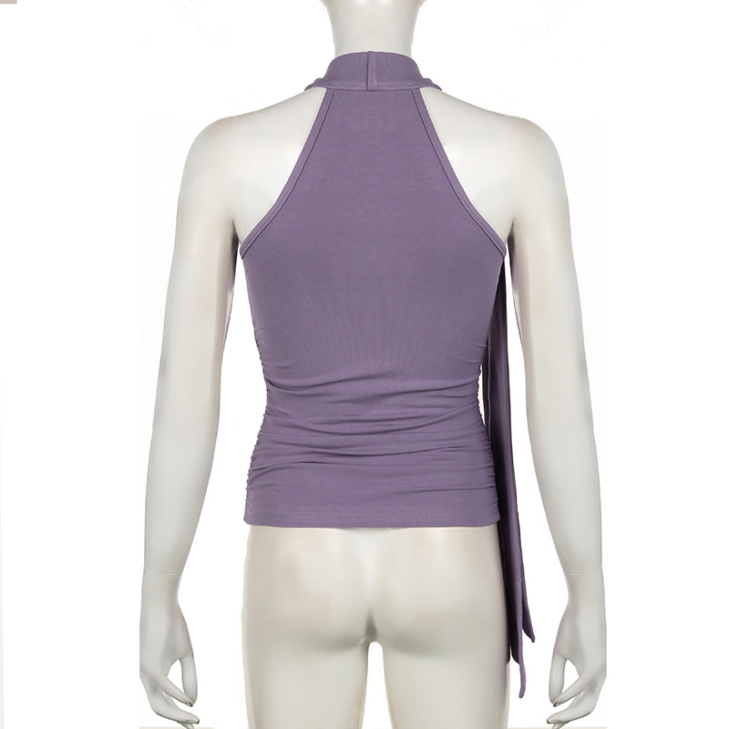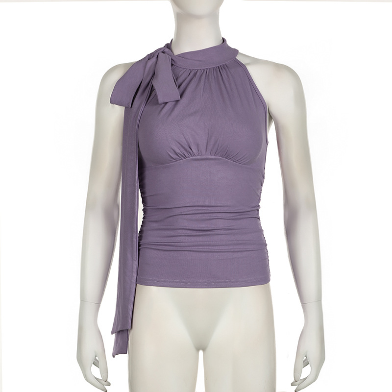 French Elegant Scarf Peplum Top Solid Color Pleated Sleeveless Vest Women Summer