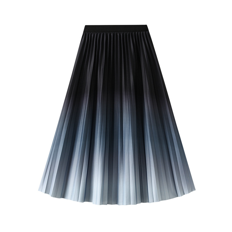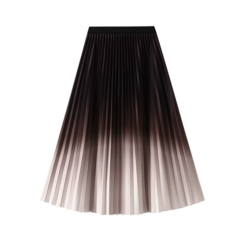 Gradient Skirt Women Spring Autumn Elastic High Waist Slimming Pleated Skirt Drape Midi Skirt