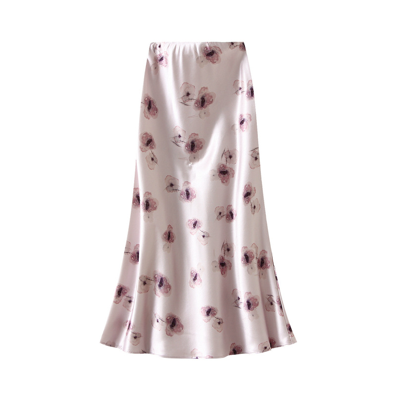 High Grade Satin Skirt Women Summer Printed Fishtail Skirt Slim Fit Mid Length Dress