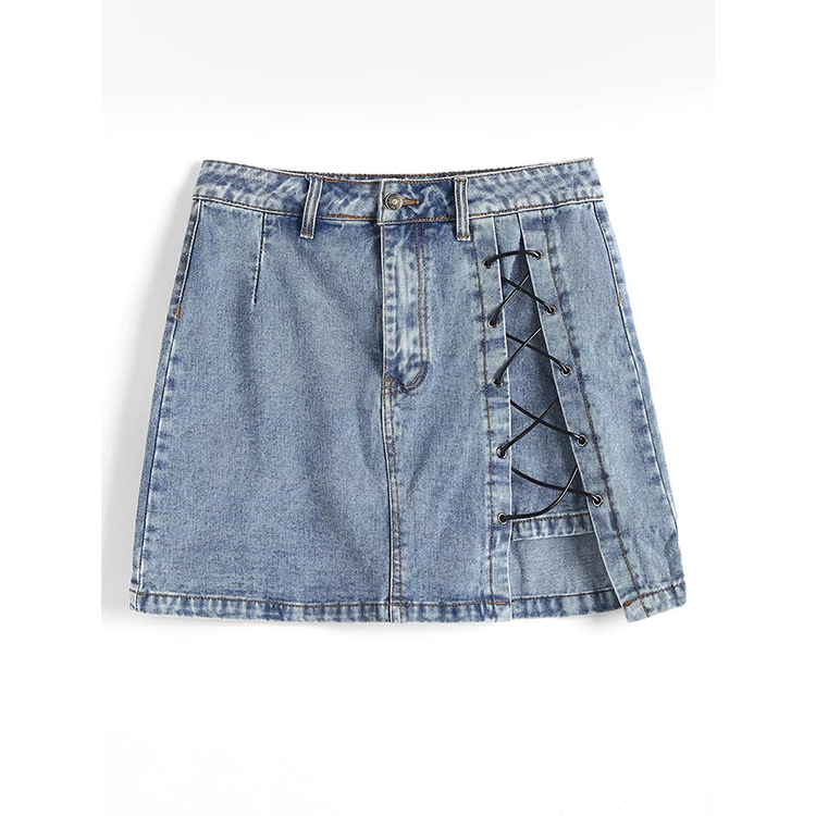 High Waist Denim Skirt Summer Slimming Lace Up Split Skirt