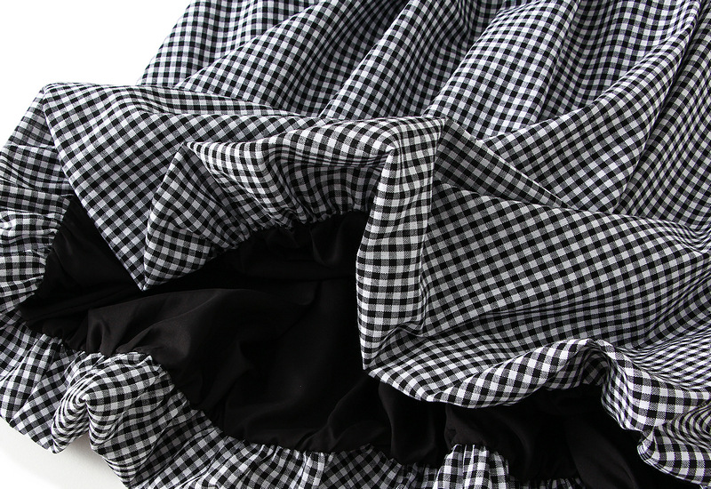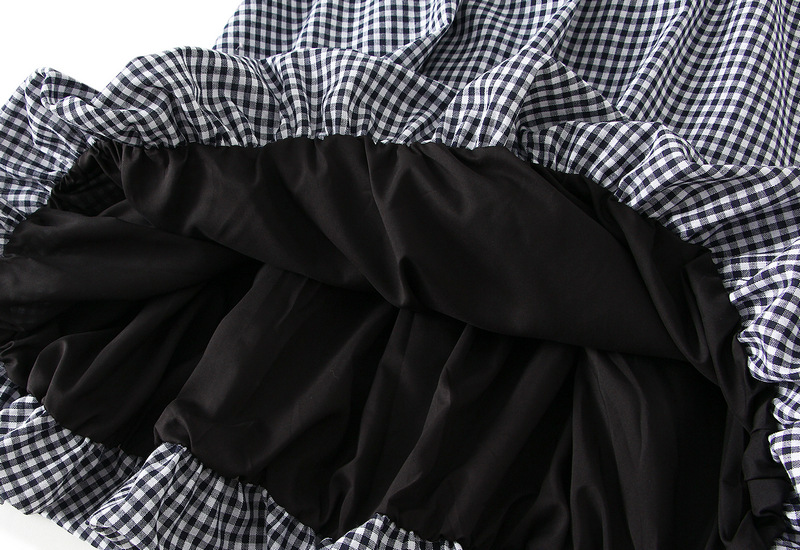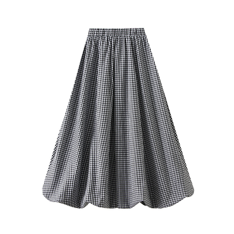 Japanese Plaid Bud Umbrella Skirt Women Spring Summer High Waist A line Skirt Mid Length Lantern