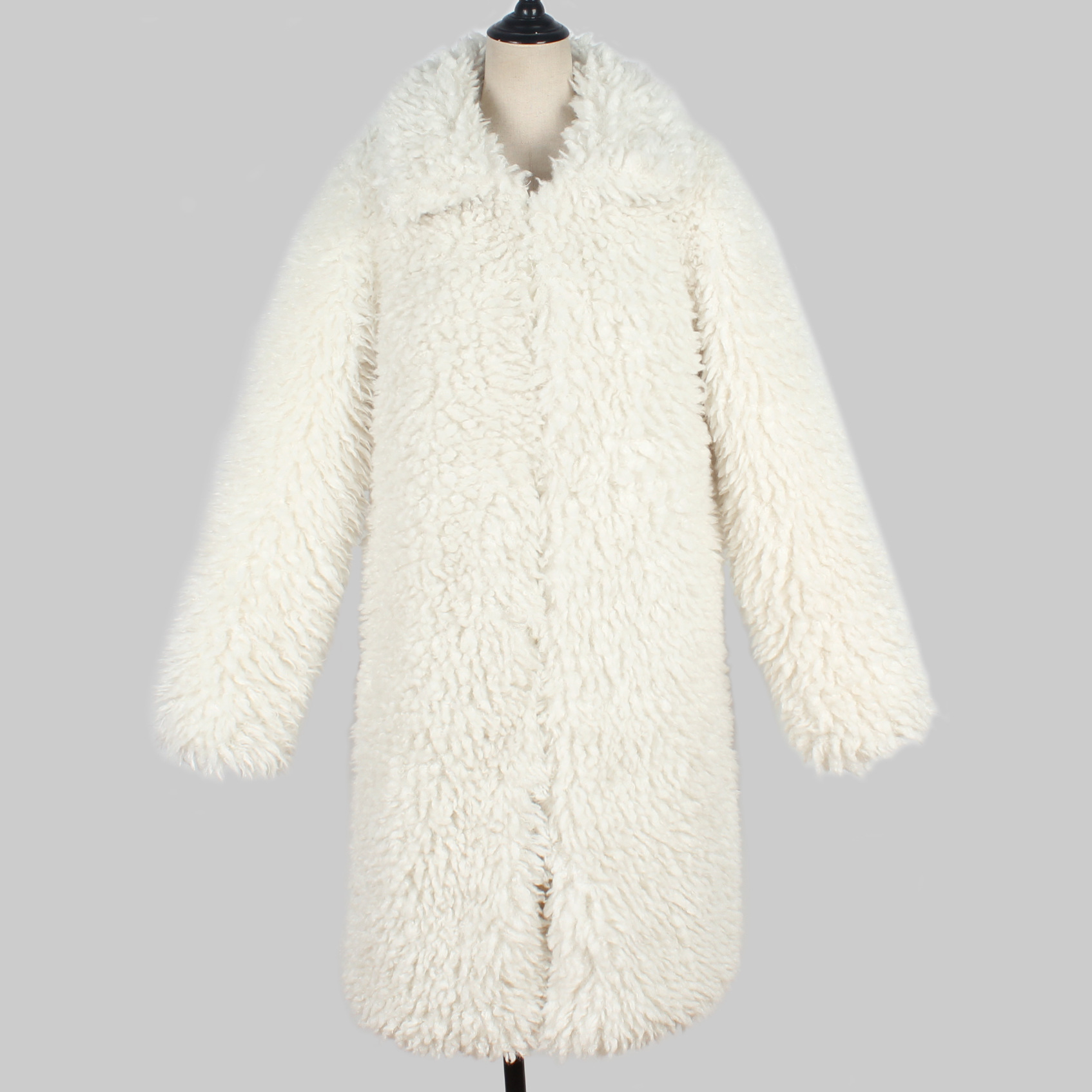Ladies Faux Fur Coat Top Plush Collared Coat Long Autumn Winter