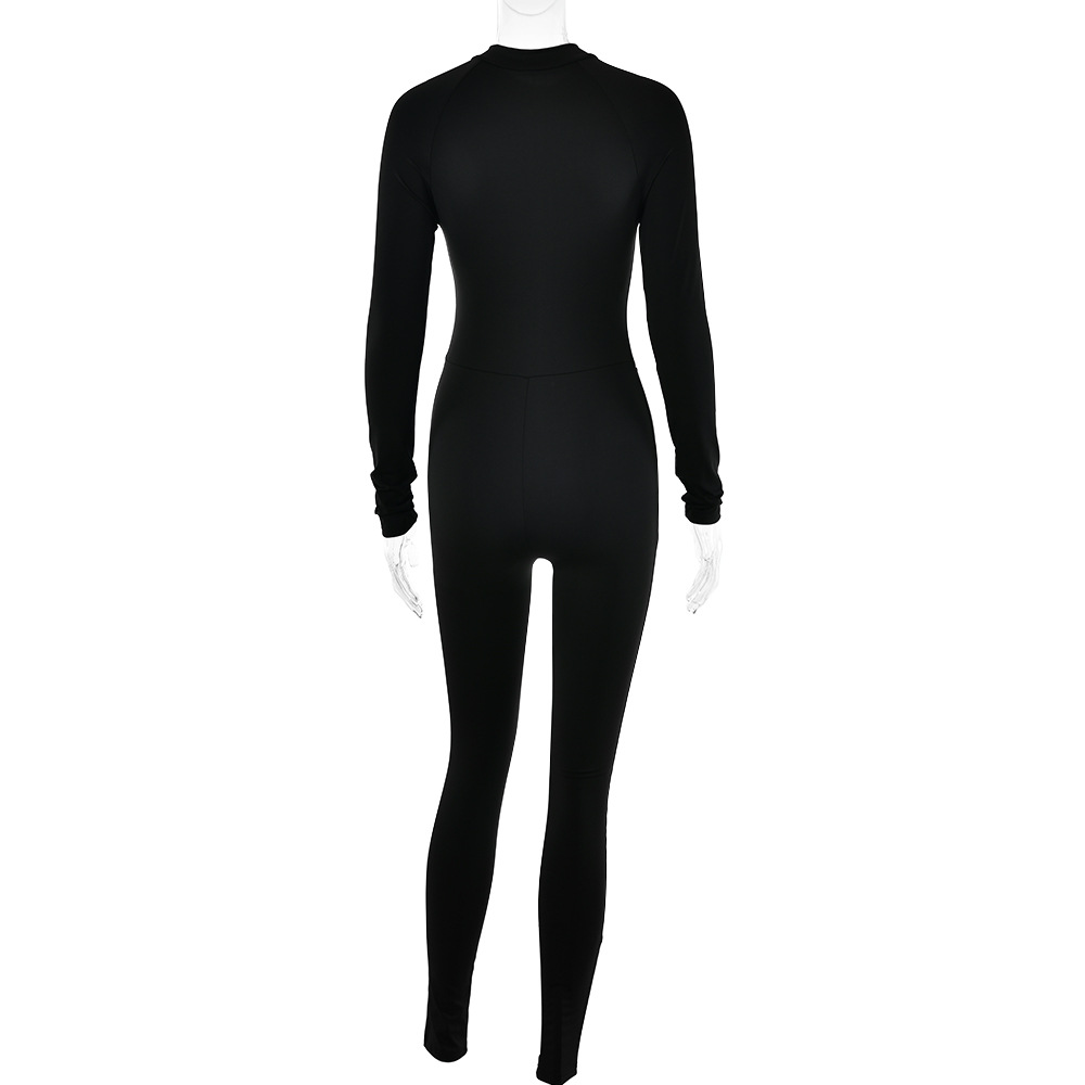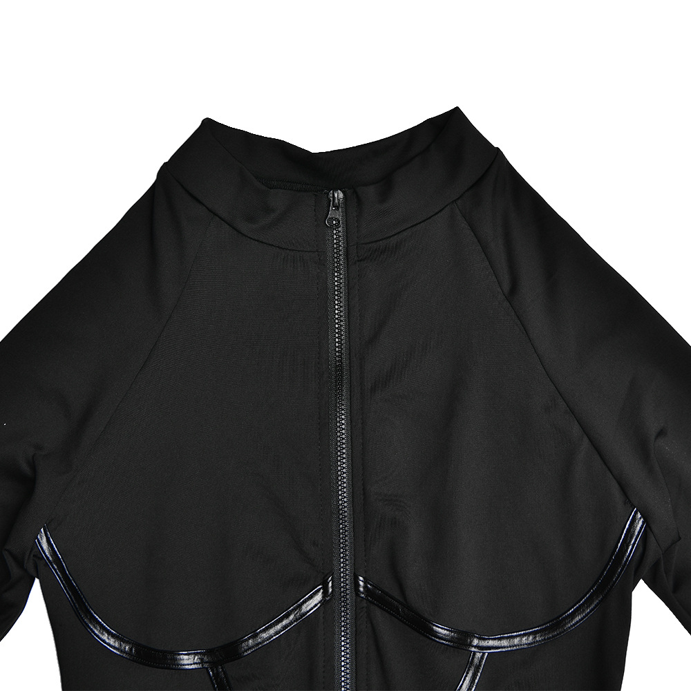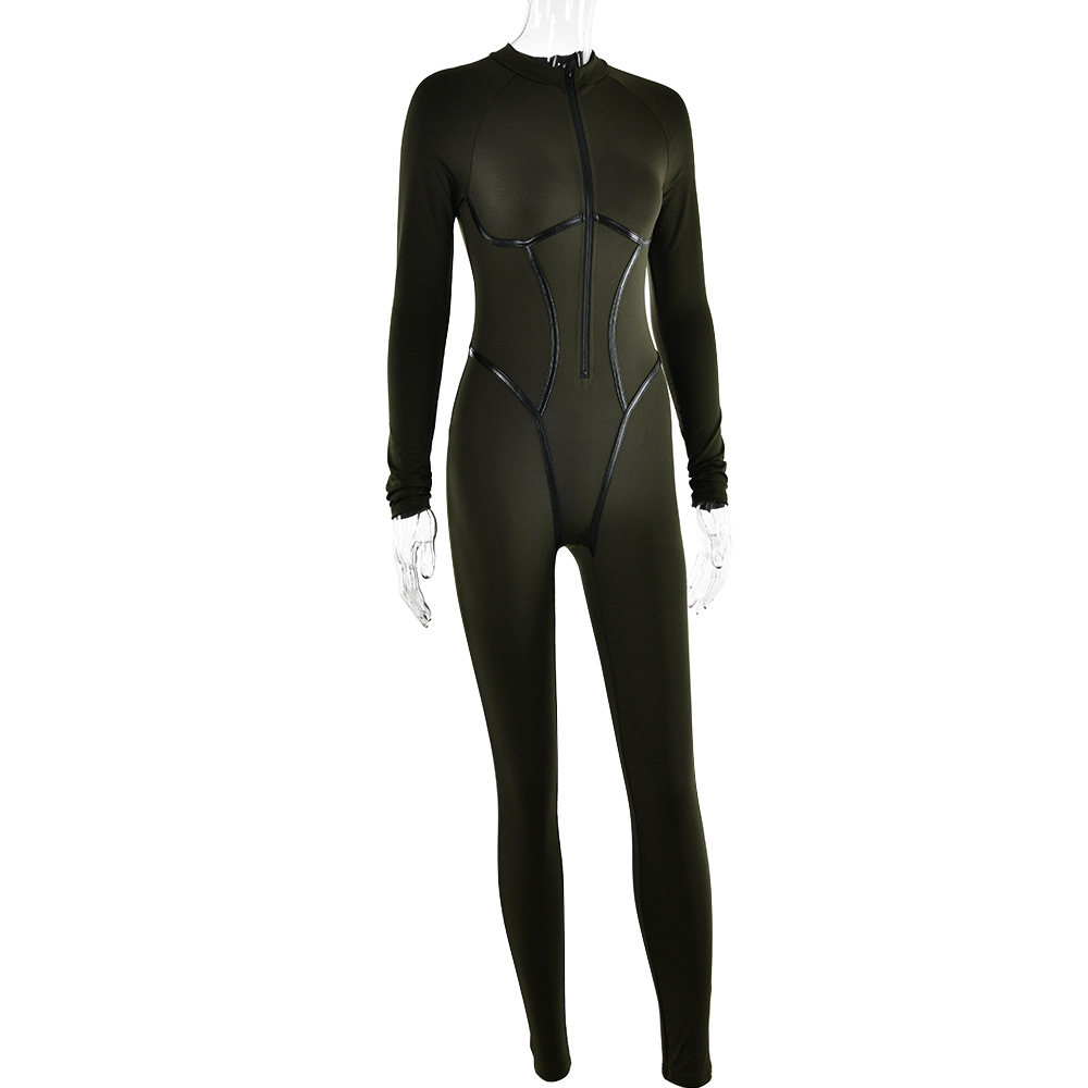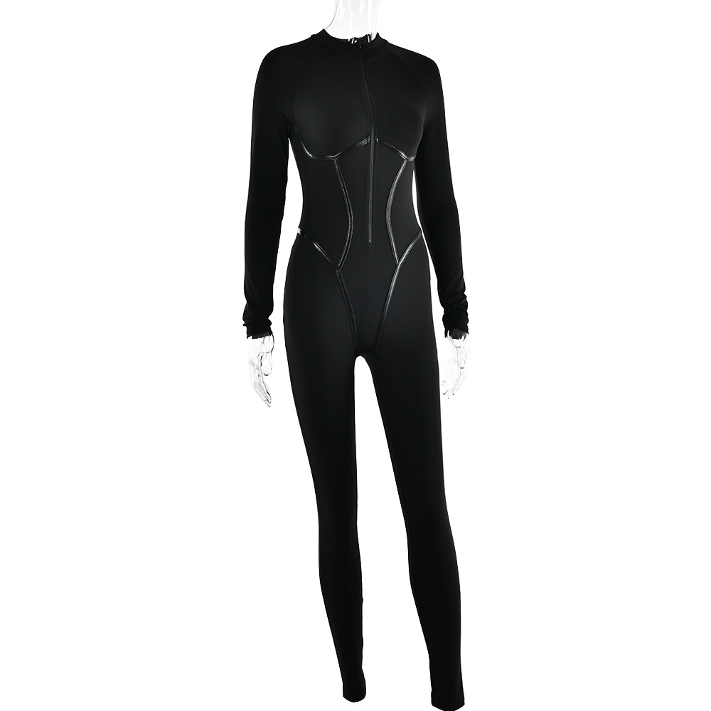 Leather Strap Split Sports Leggings Sexy Tight Long Sleeve Jumpsuit