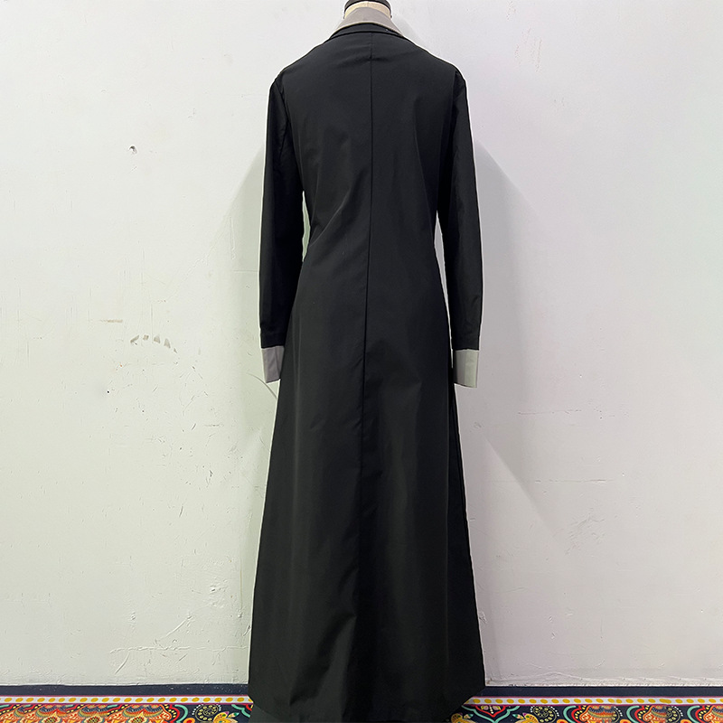 Long Collar Stitching Contrast Color Trench Coat Women Office Coat