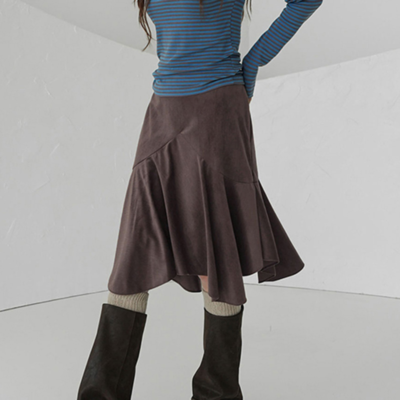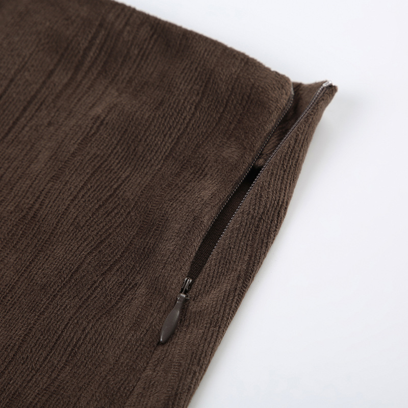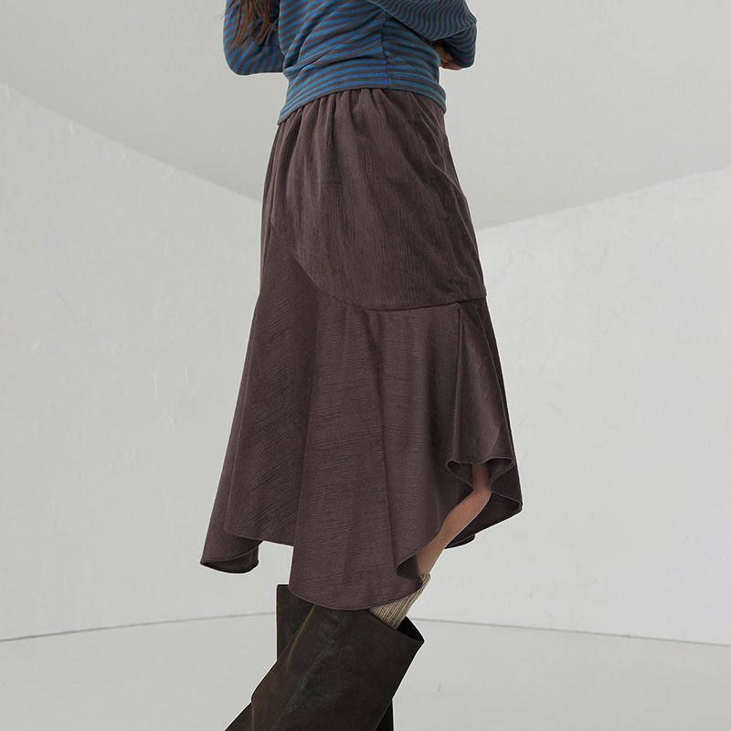 Mid Length with Irregular Asymmetric Draping Design Women Autumn Winter Retro Brown Bandage Skirt
