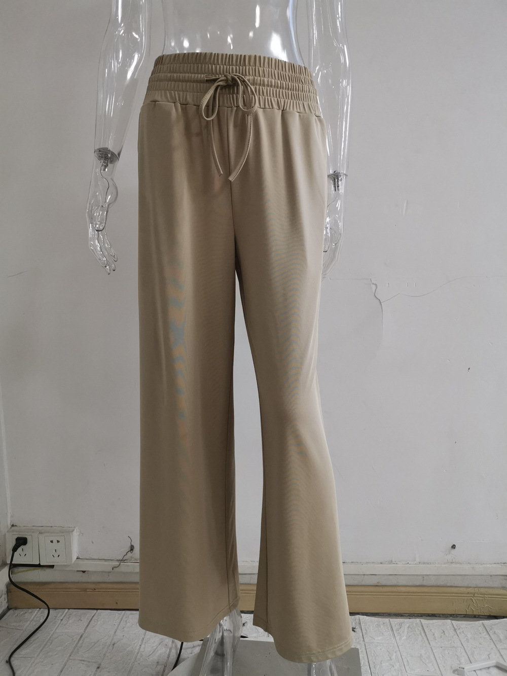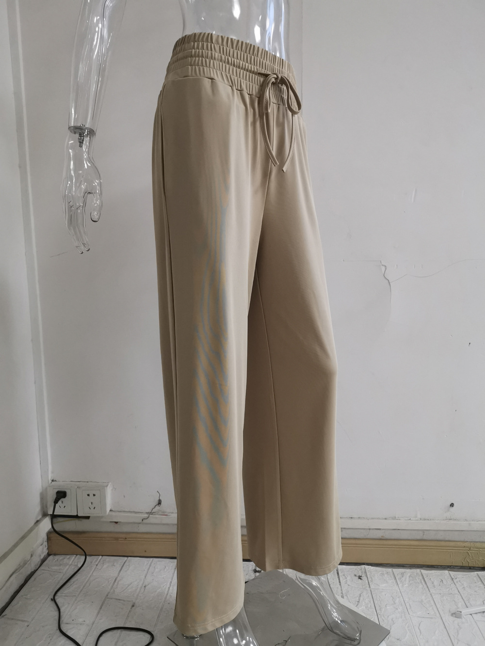 New Straight Pants Loose-Fitting Loungewear Casual Trousers Mid-Waist Solid Color Tied Wide-Leg Pants for Women