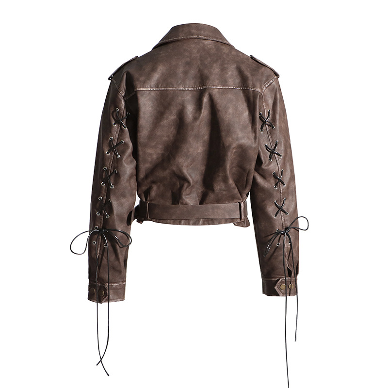 Niche Design Women Short Distressed Washed Leather Coat Asymmetric Zipper Tooling Coat for Women