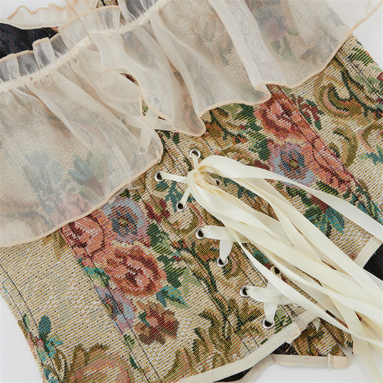 Element: Ruffle,Boning,hook closure,Lace up,Lace/Tulle/Fishnet,Jacquard