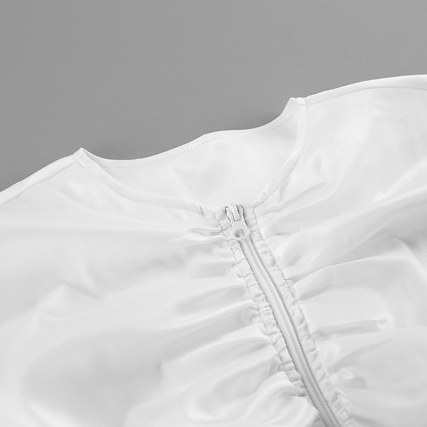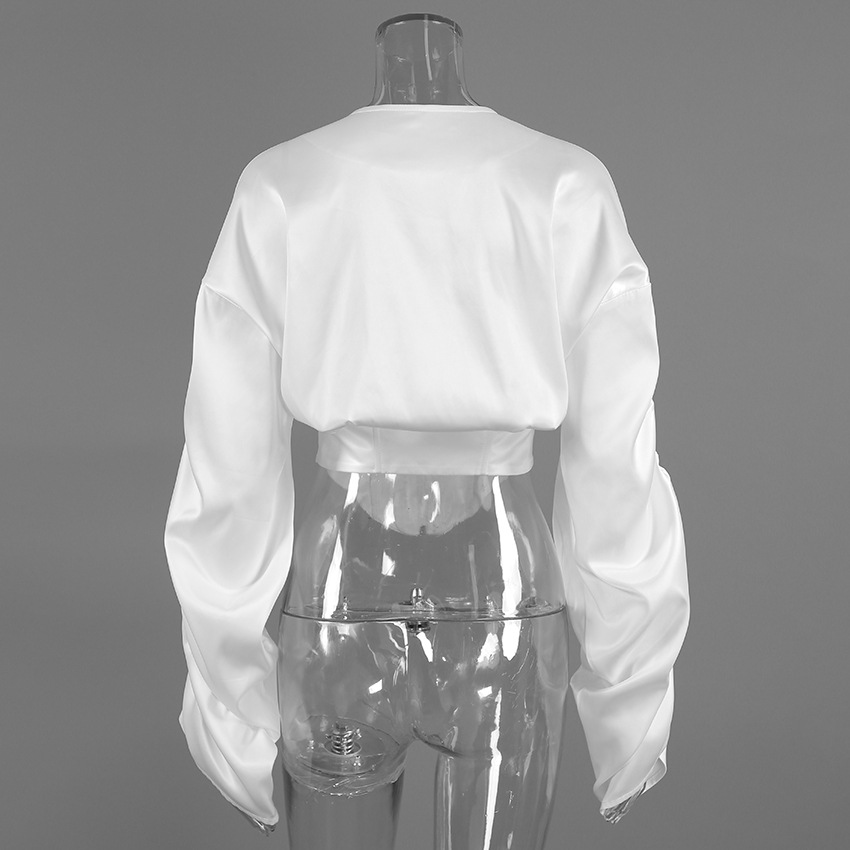 Palace Women Clothing Fitted Waist Pleated round Neck Long Sleeve Shirt High Grade Cardigan