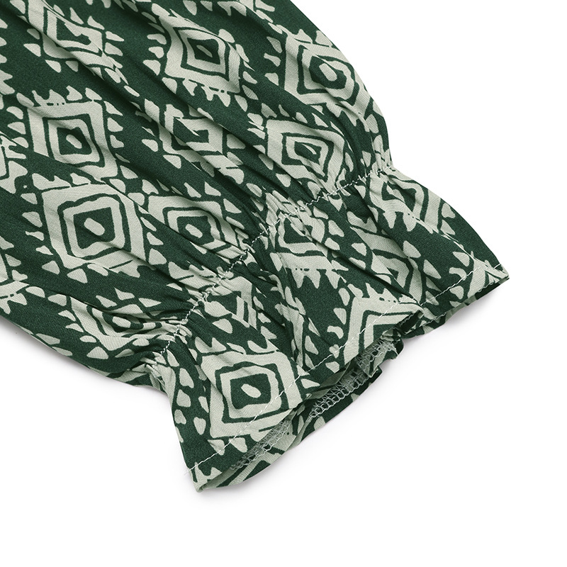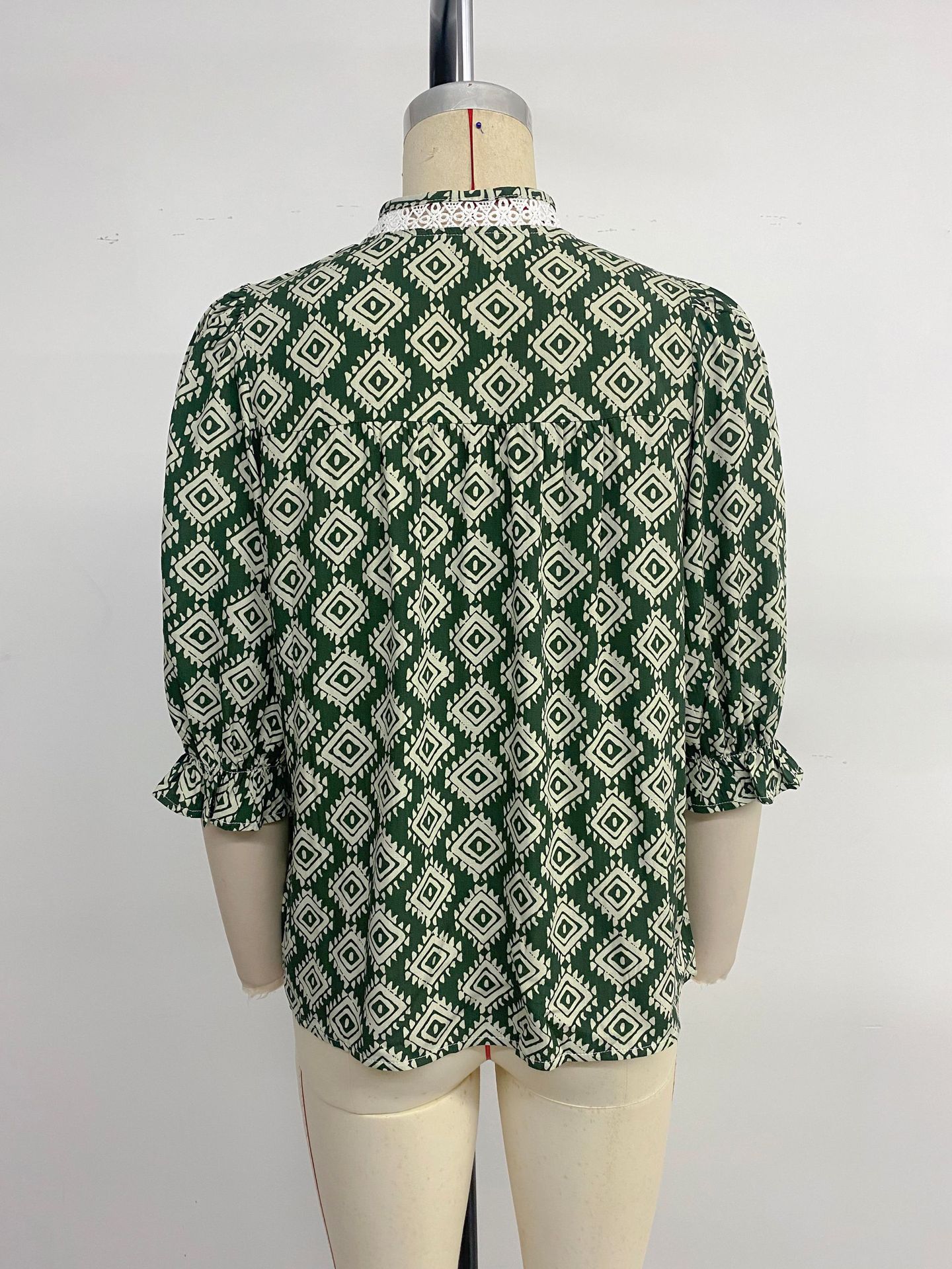Party Ruffled Short Sleeves Geometric Abstract Print Women Shirt