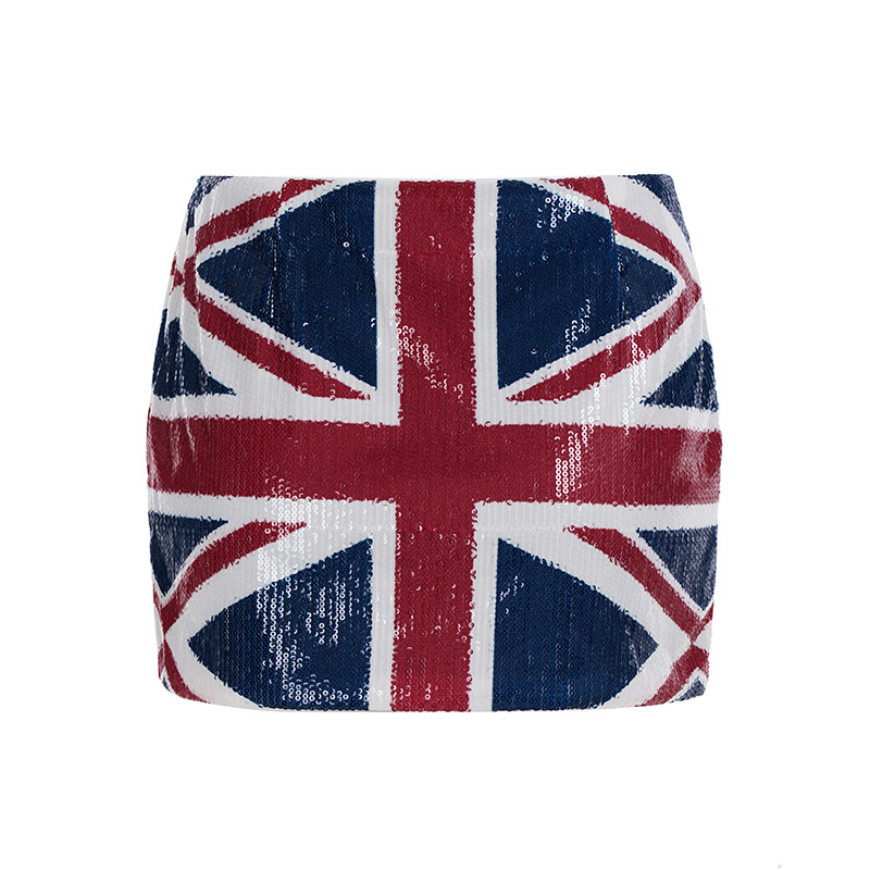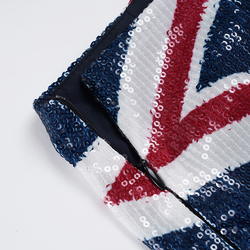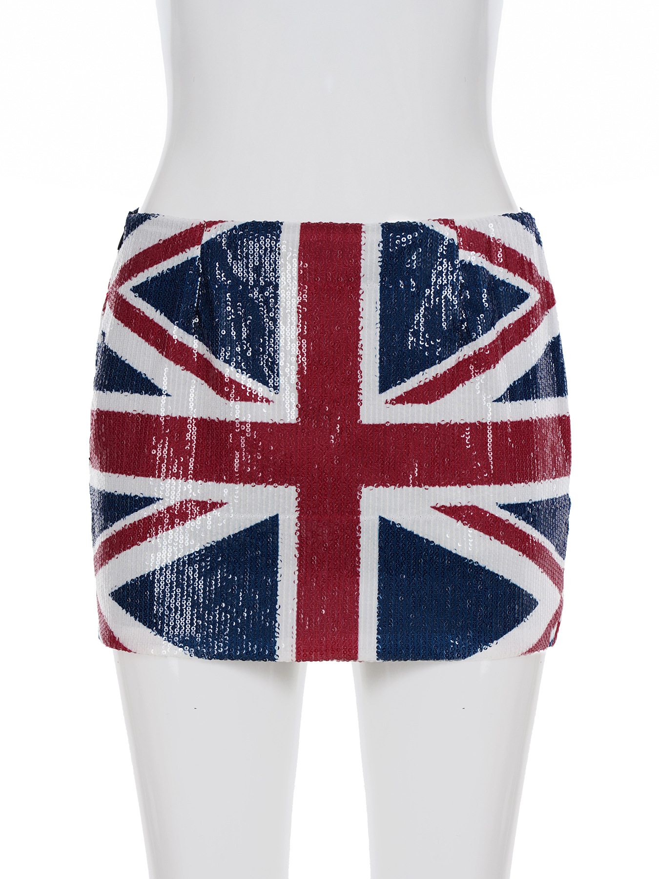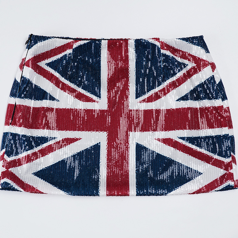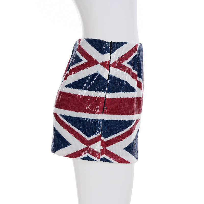Personality Street Sexy Women Clothing Flag Sequin Stitching Contrast Color Hip Sexy Skirt Summer