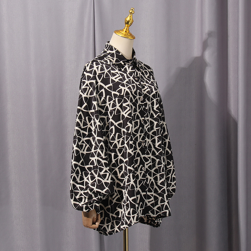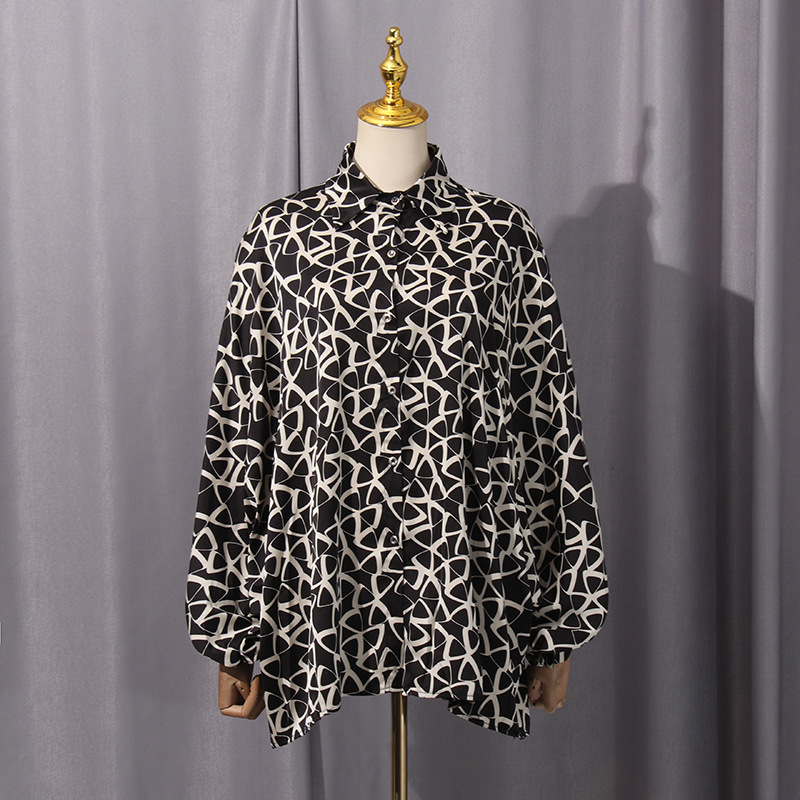 Personality Street Trendy Color Matching Contrast Color Women Shirt Autumn Loose Top