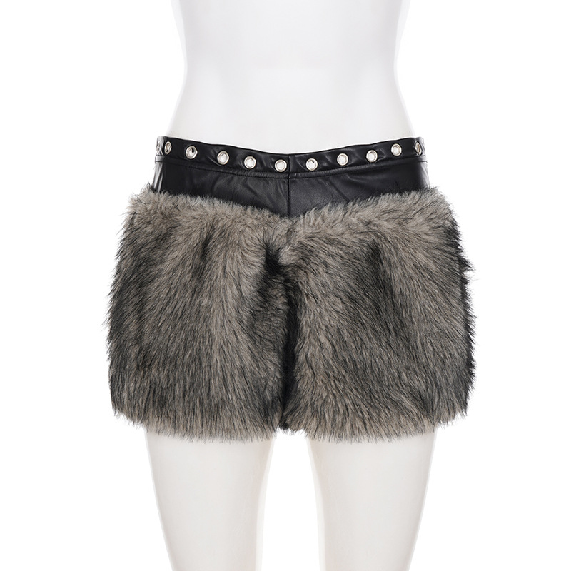 Plush Stitching Shorts Warm Comfortable Sexy Corns Low Waist Plush Shorts