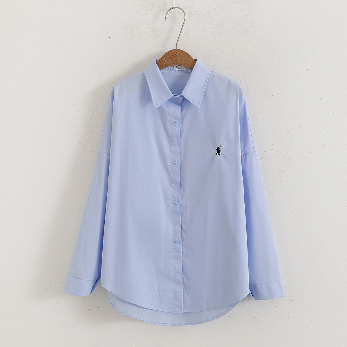 Pony Embroidered Blue Shirt Women Long Sleeve Loose Niche Shirt