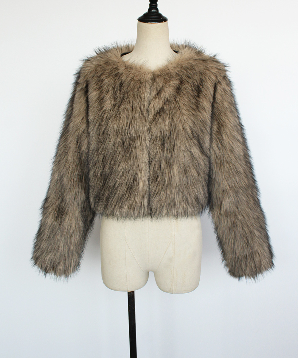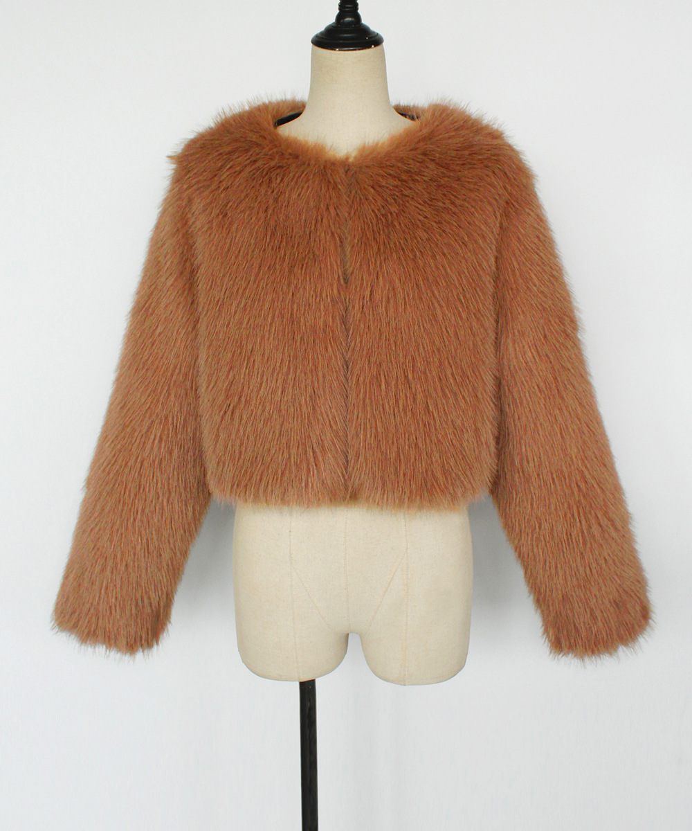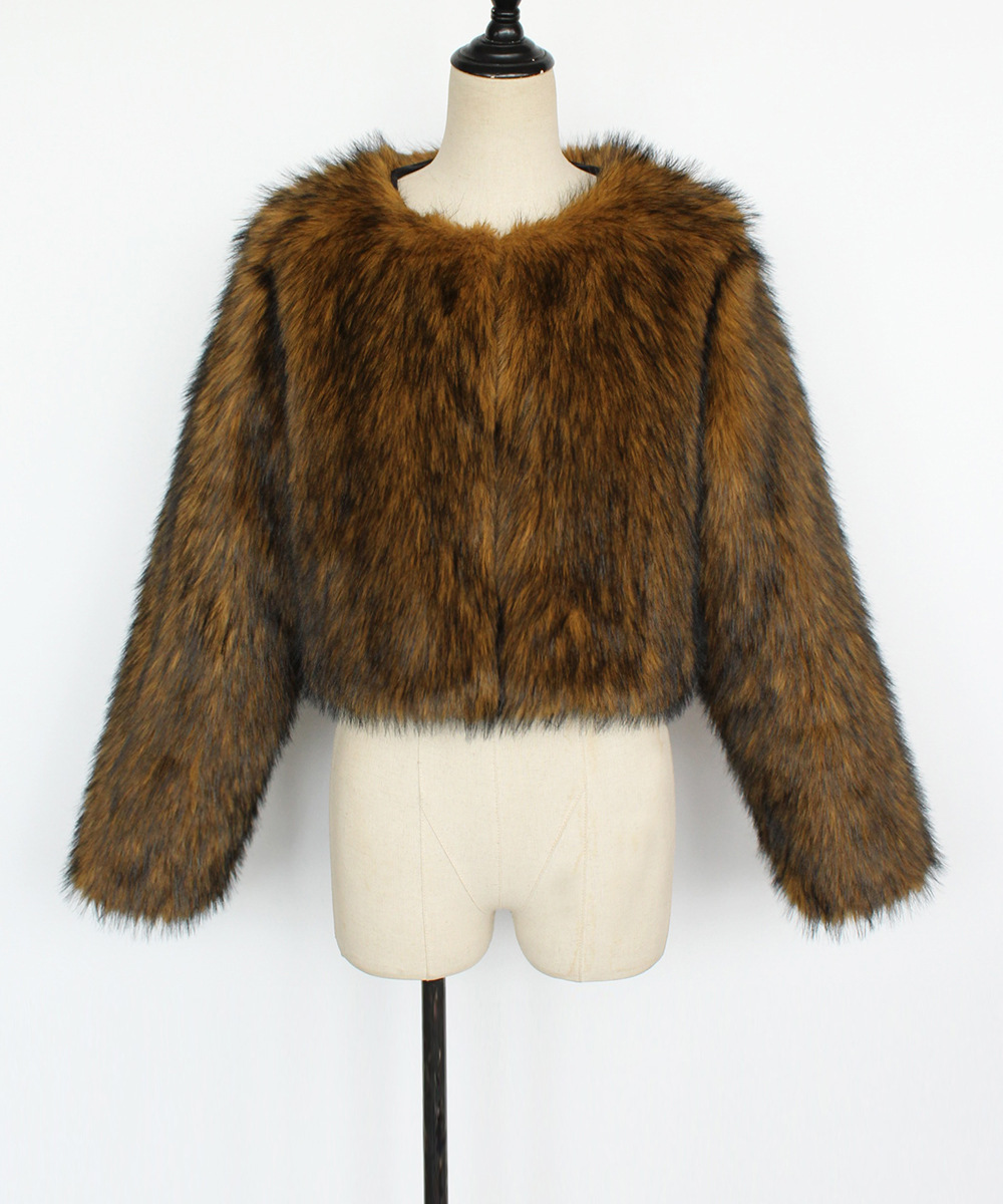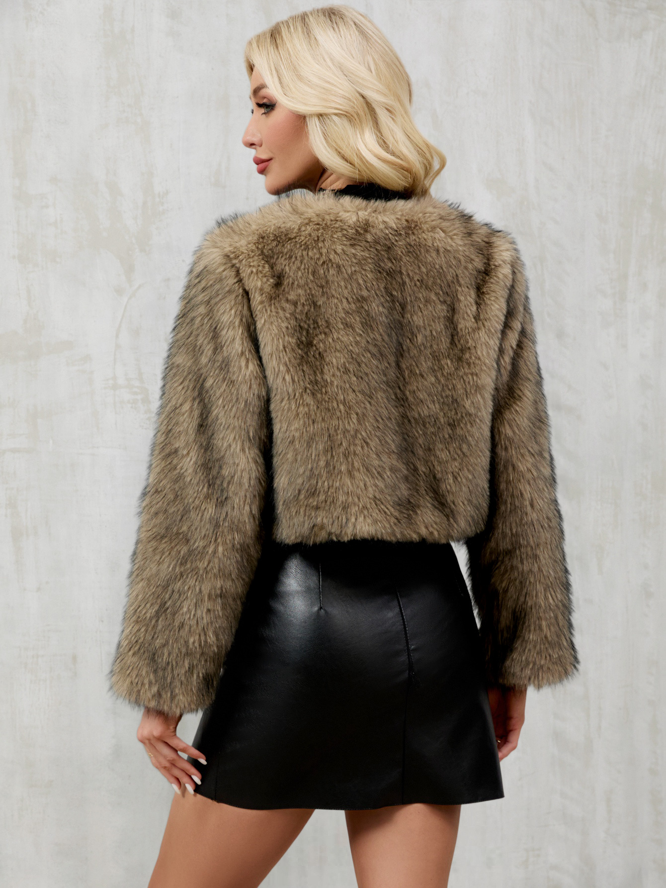 Popular Short round Collarless Women Faux Fur Top Women Plush Casual Warm