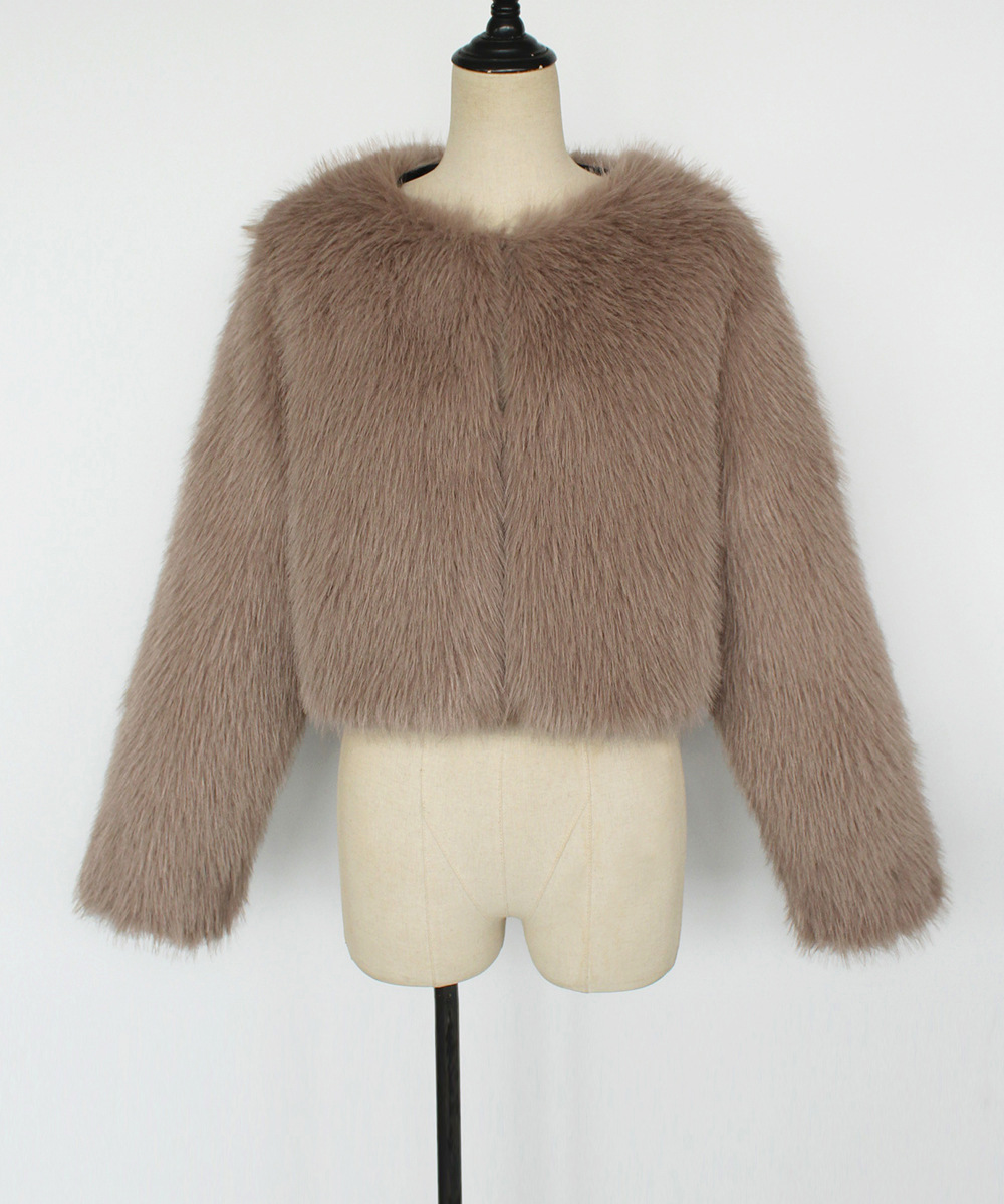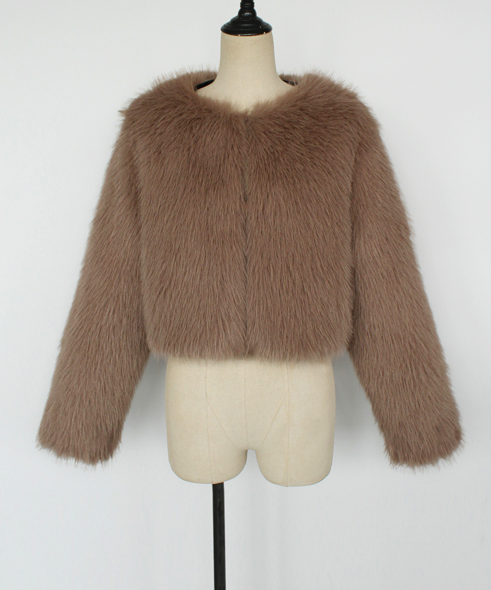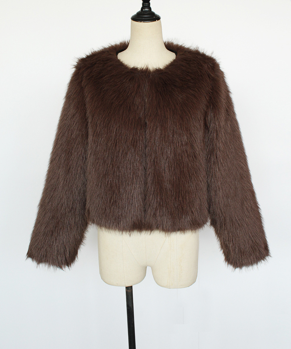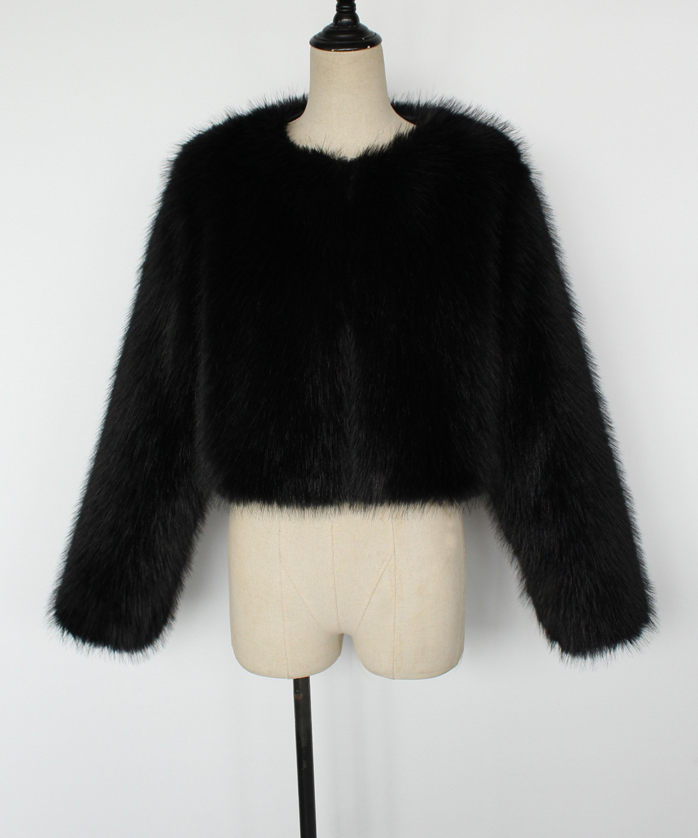 Popular Short round Collarless Women Faux Fur Top Women Plush Casual Warm