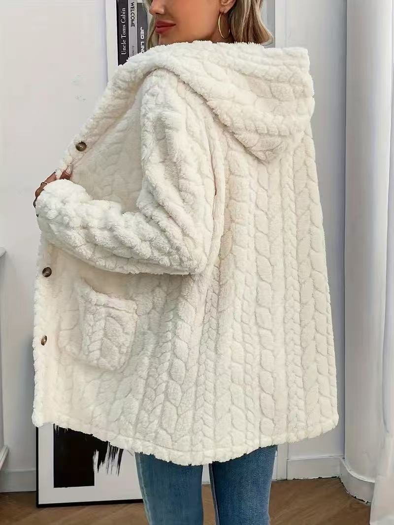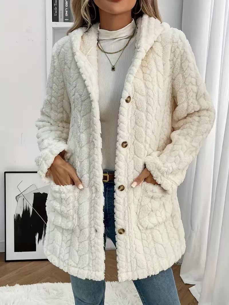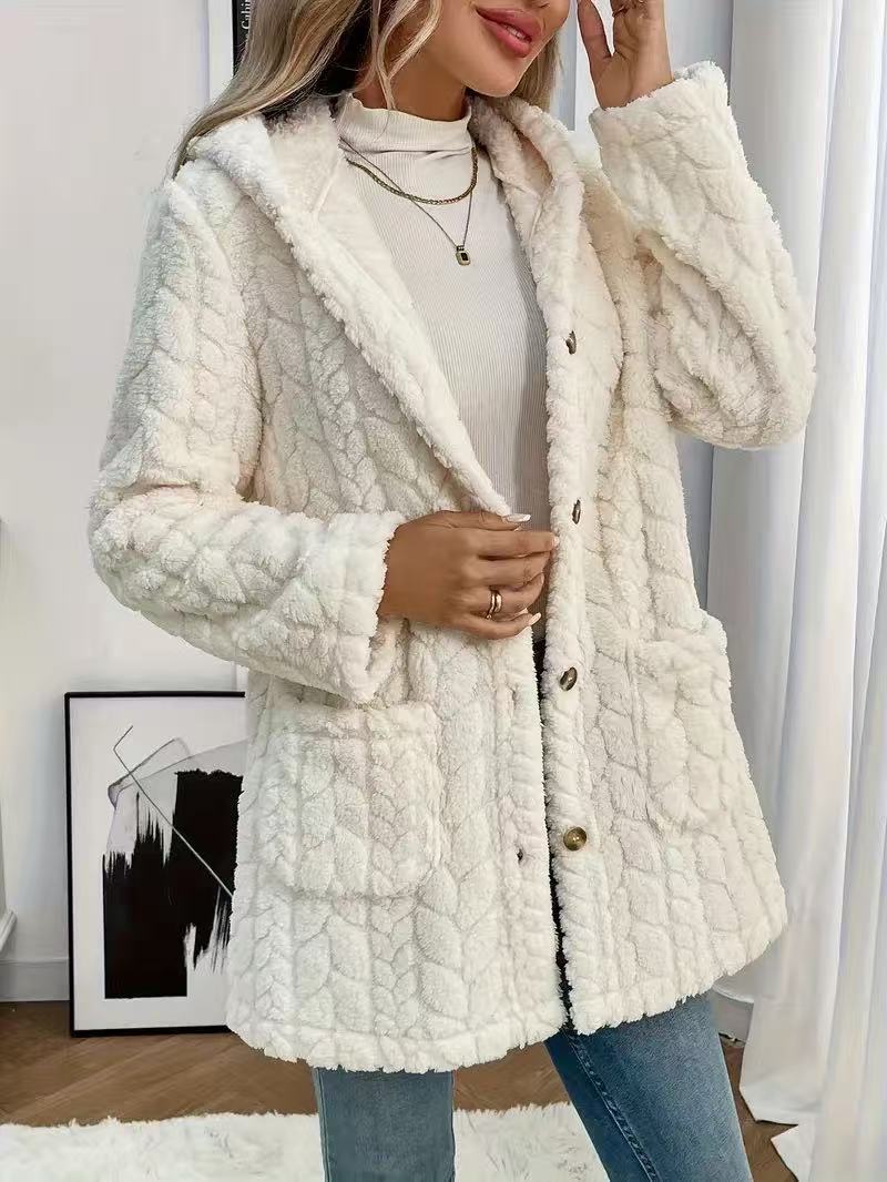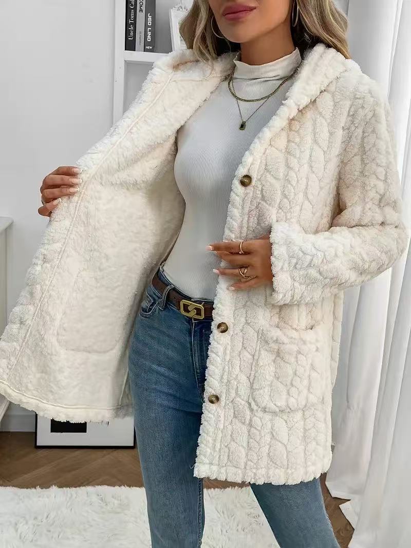 Popular Solid Color Double Sided Plush Casual Women Autumn Winter Mid Length Plush Coat