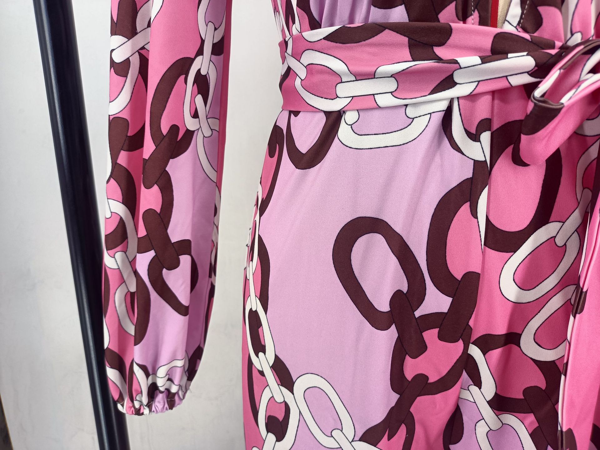 Printed Deep V Plunge Long Sleeve Jumpsuit Women Clothing Casual Set Loose