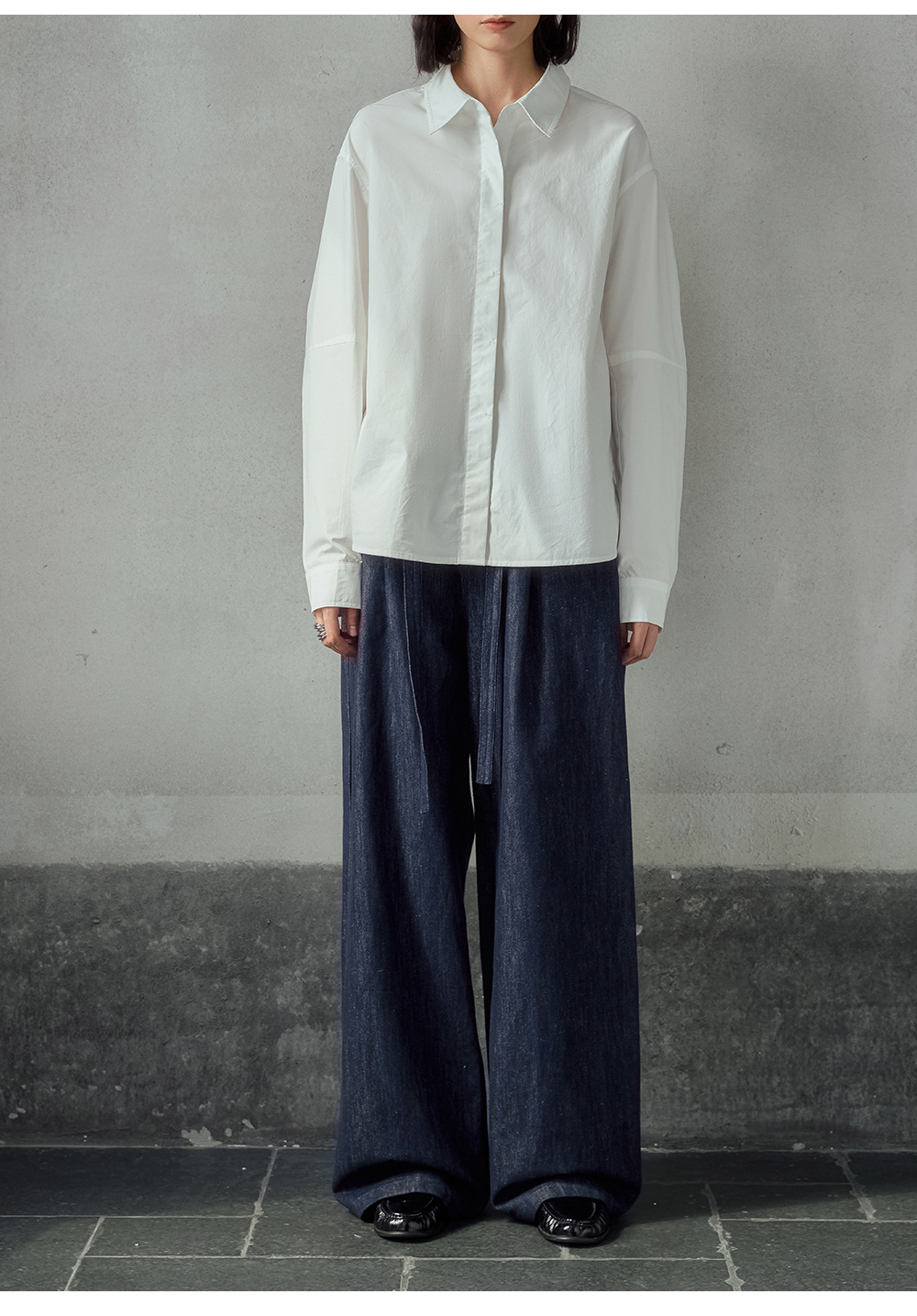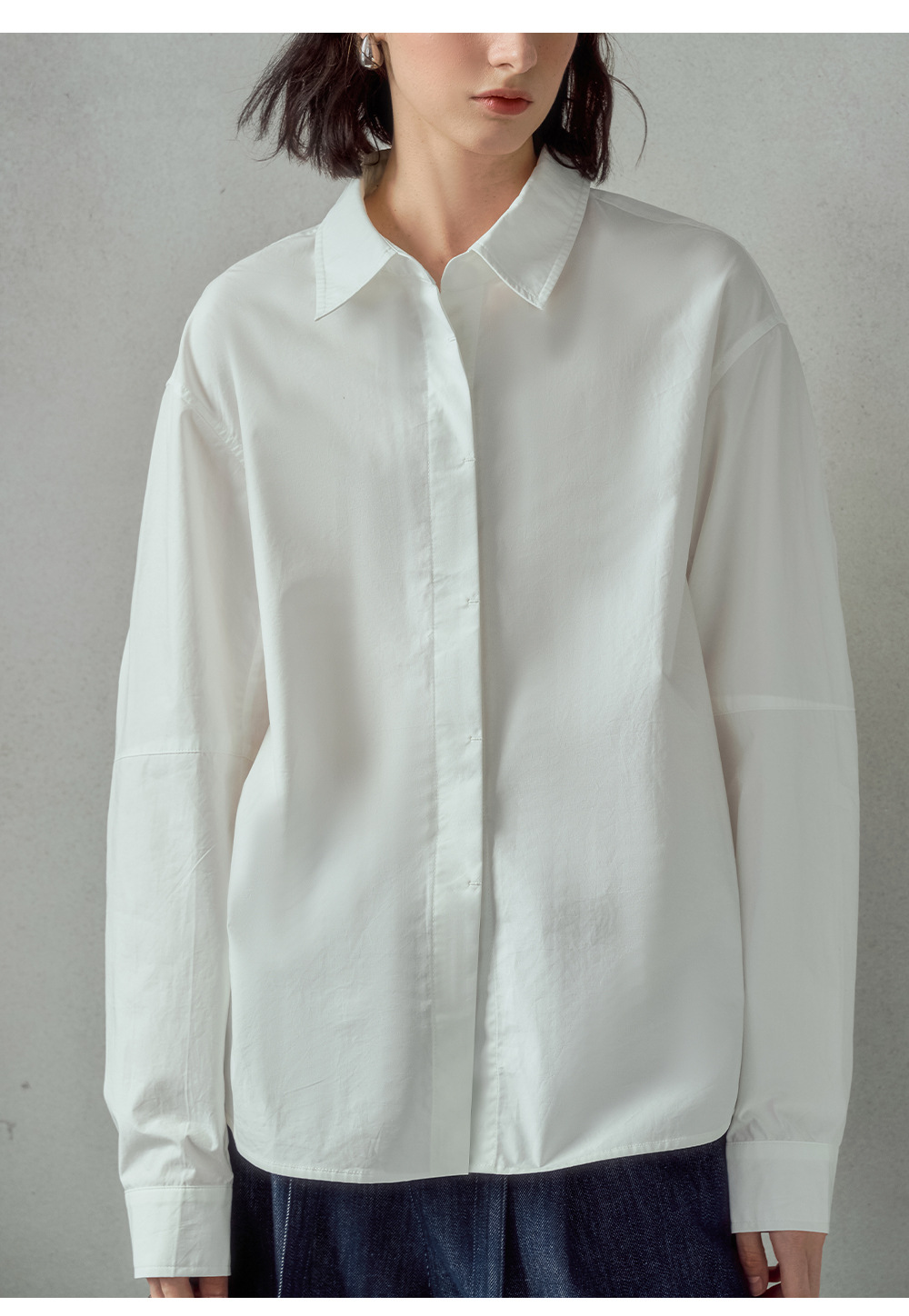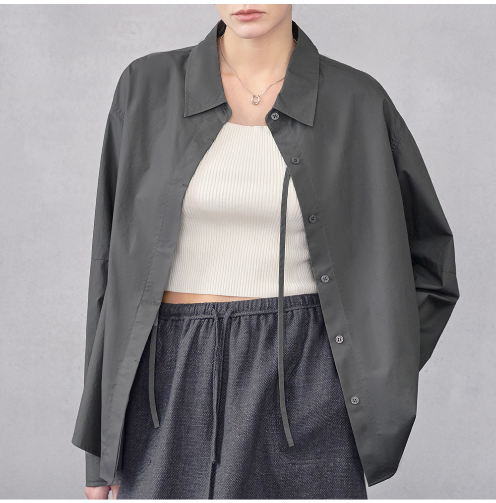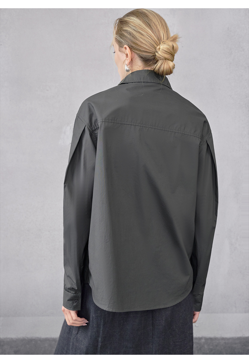 Pure Cotton Collared Long Sleeve Shirt Autumn Shoulder Sleeve Pleated Design Niche High End All Matching Women Wear Top