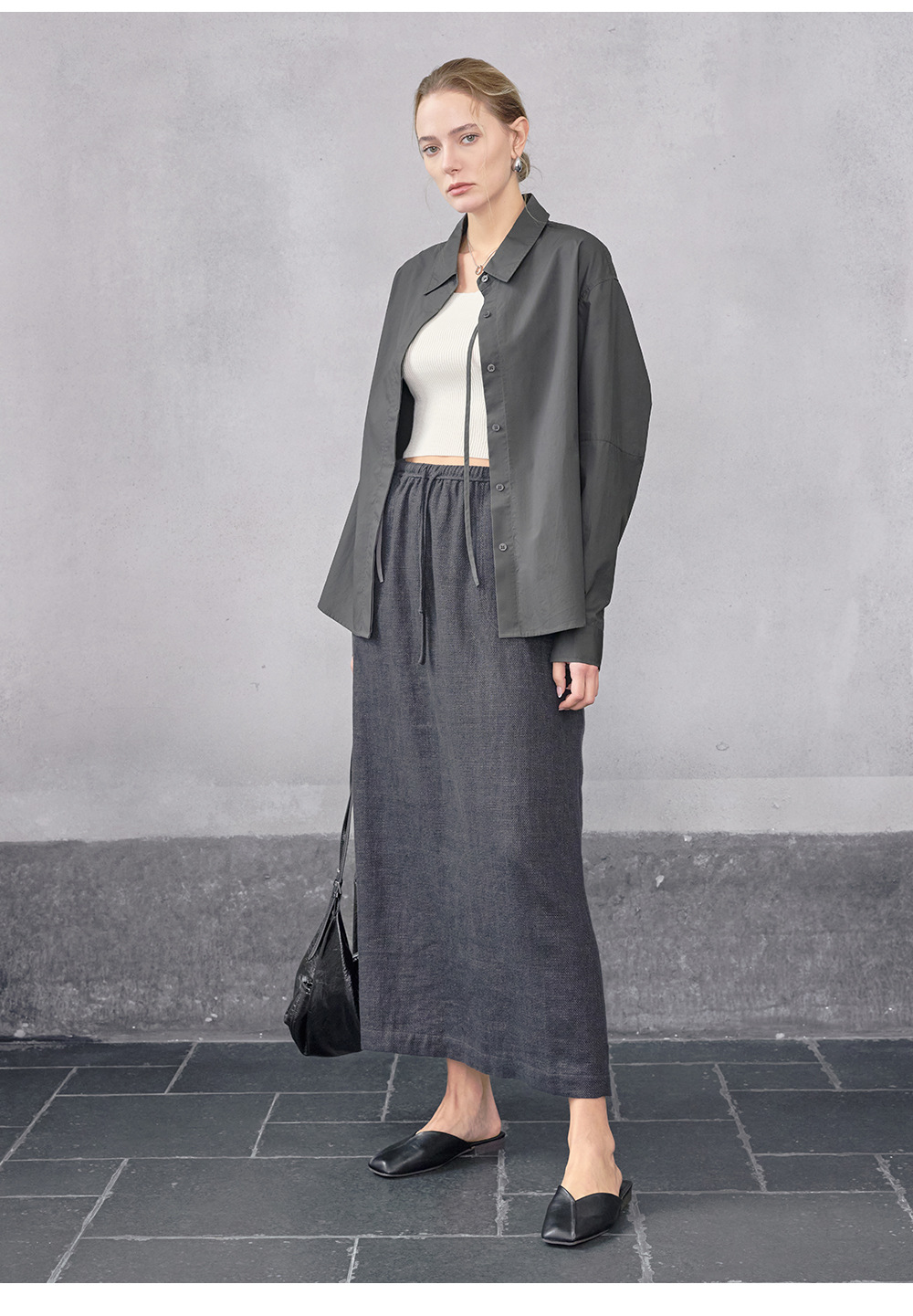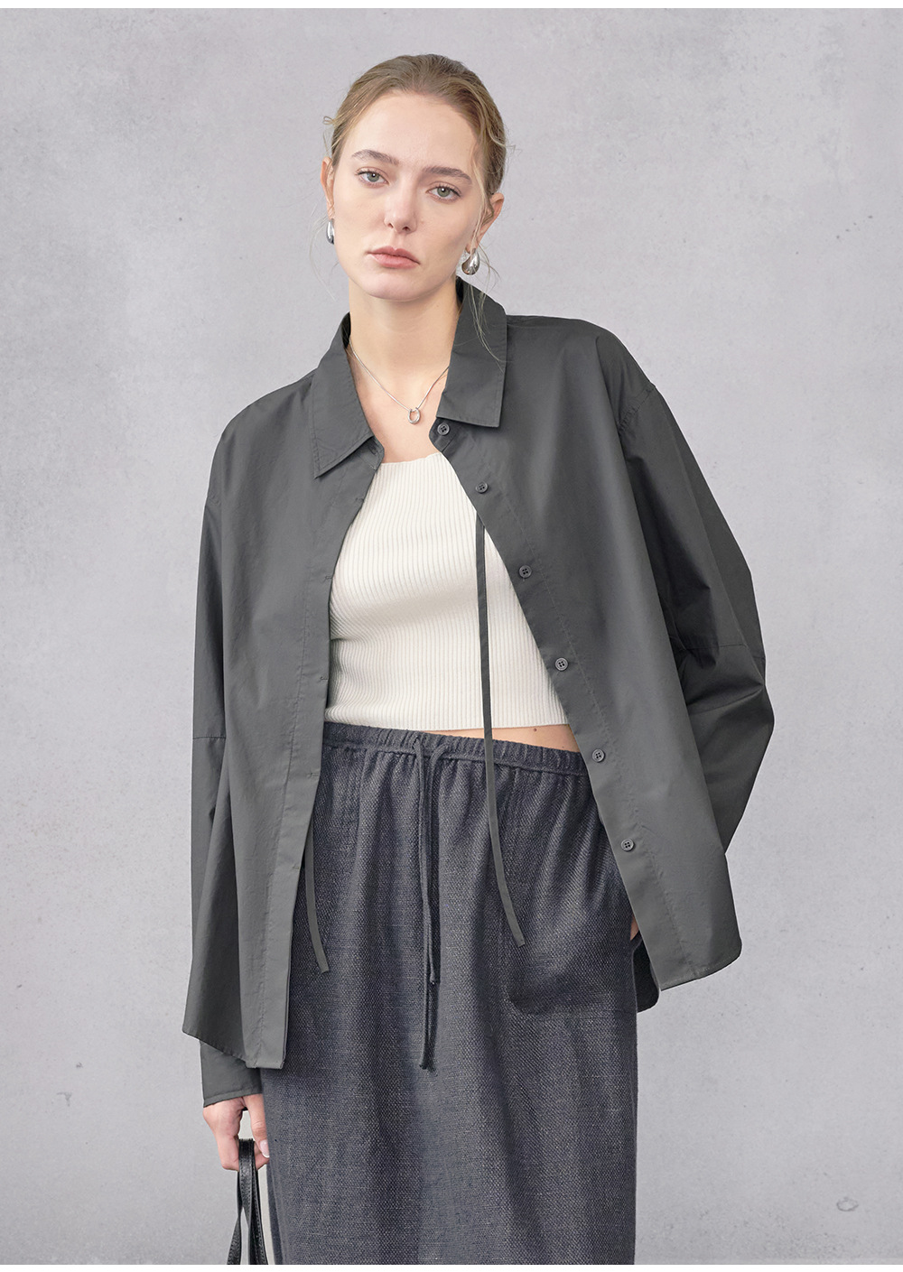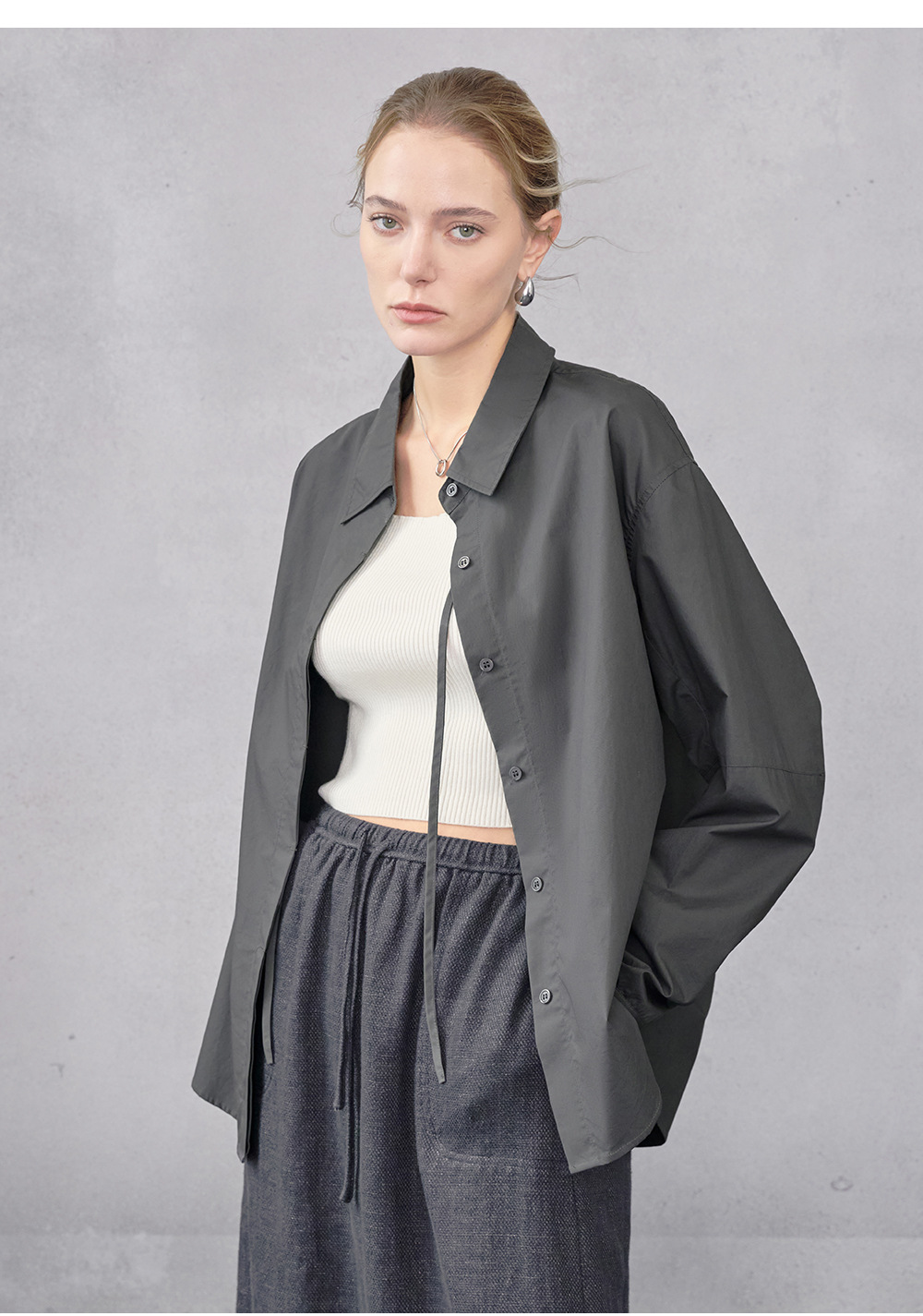 Pure Cotton Collared Long Sleeve Shirt Autumn Shoulder Sleeve Pleated Design Niche High End All Matching Women Wear Top