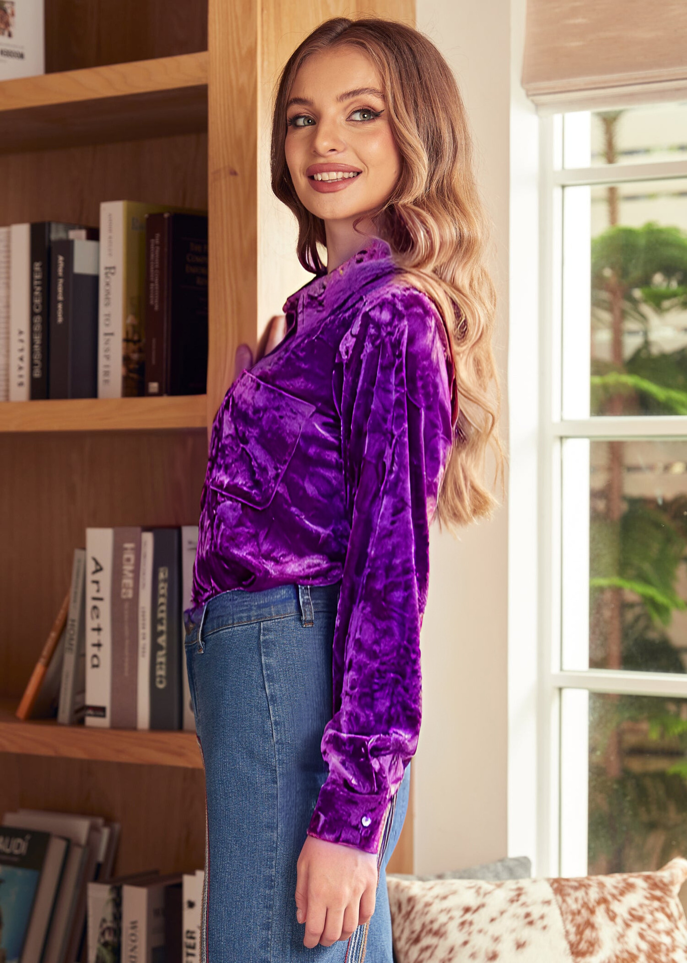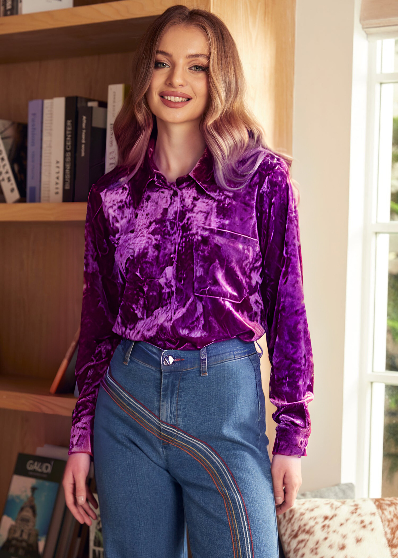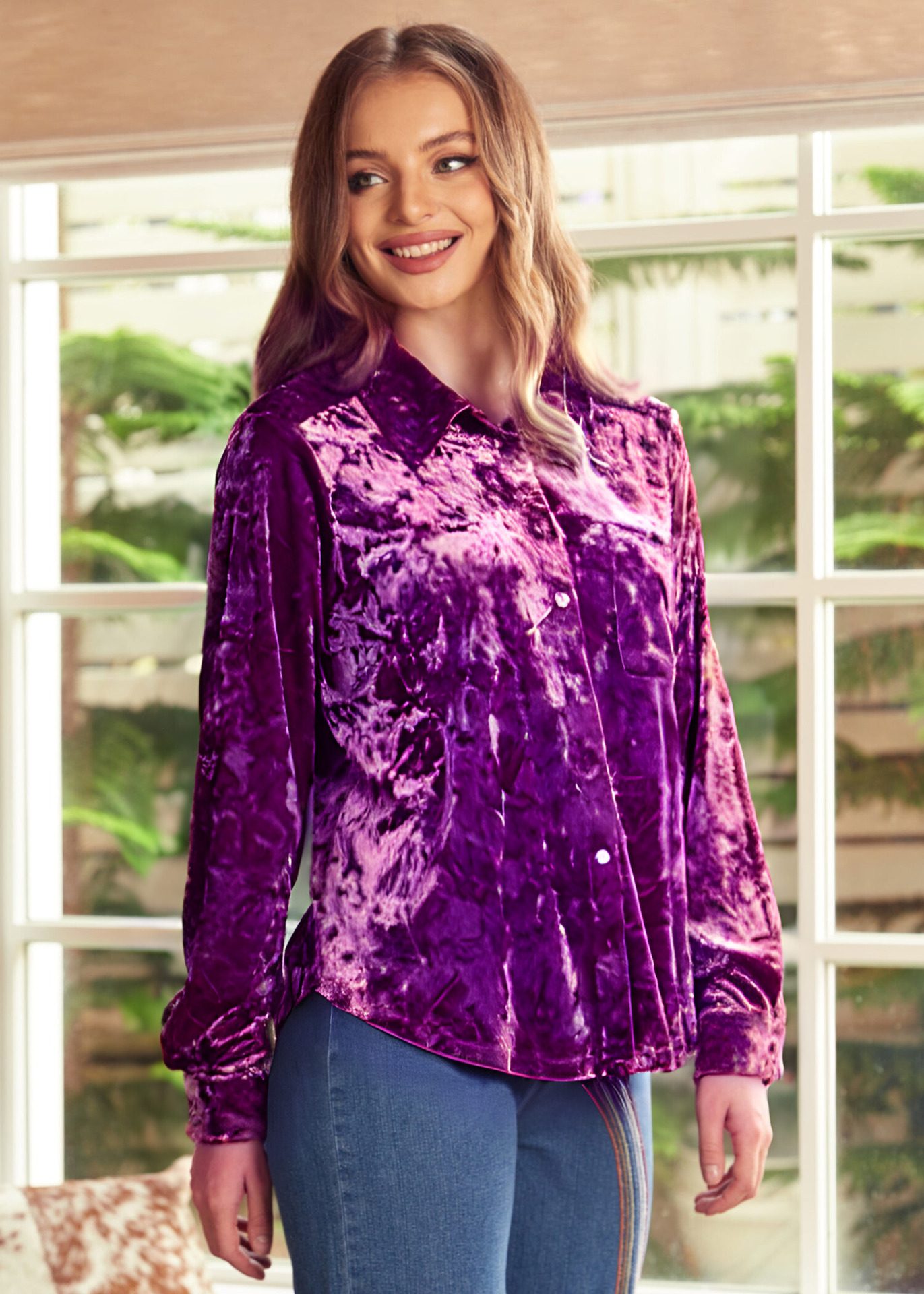 Retro Loose Diamond Velvet Shirt Autumn Winter Solid Color Polo Collar Button Long Sleeve Shirt for Women