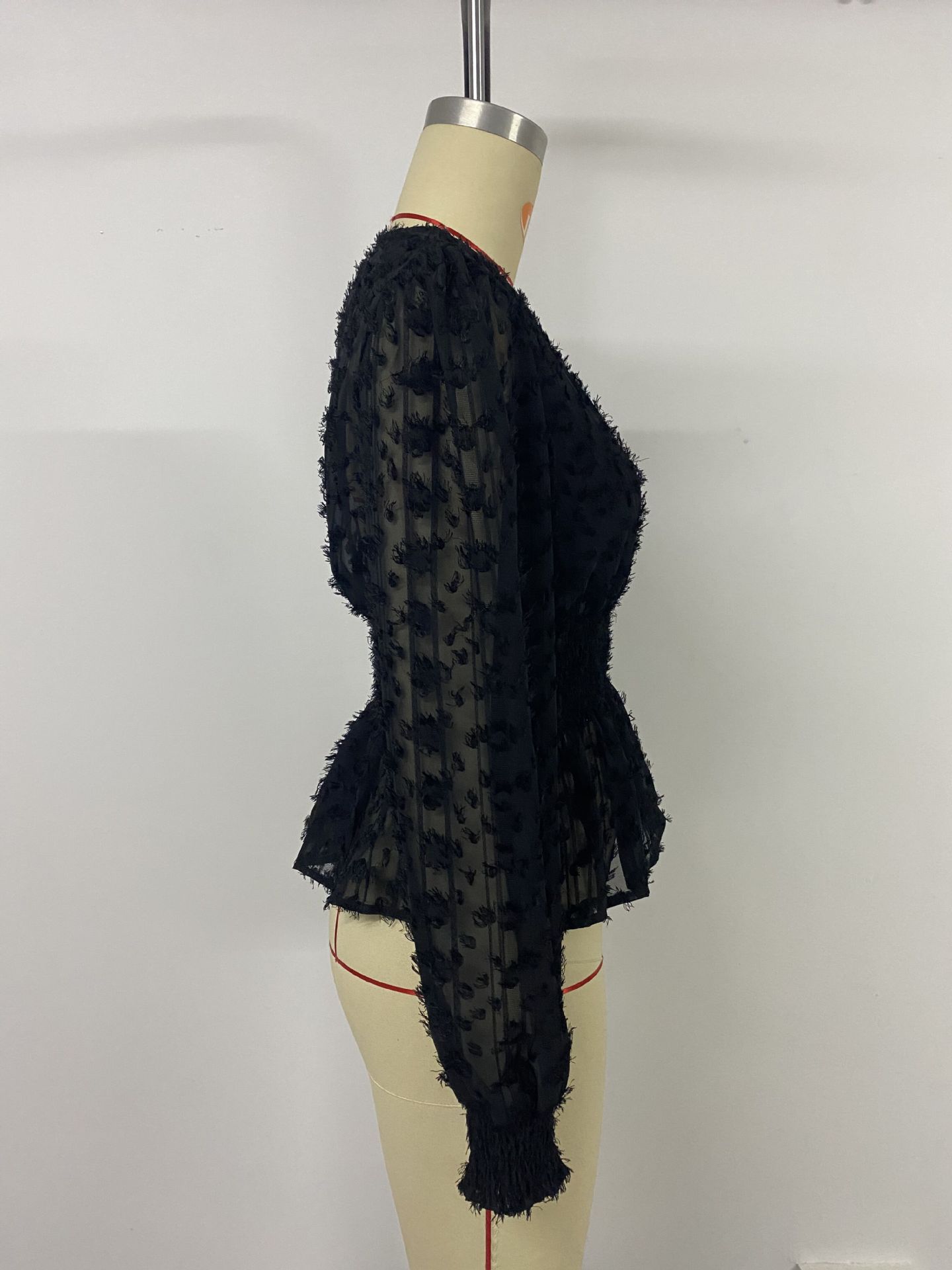 Sexy Elegant See through Bubble Long Sleeve Slim V neck Solid Color Shirt Women