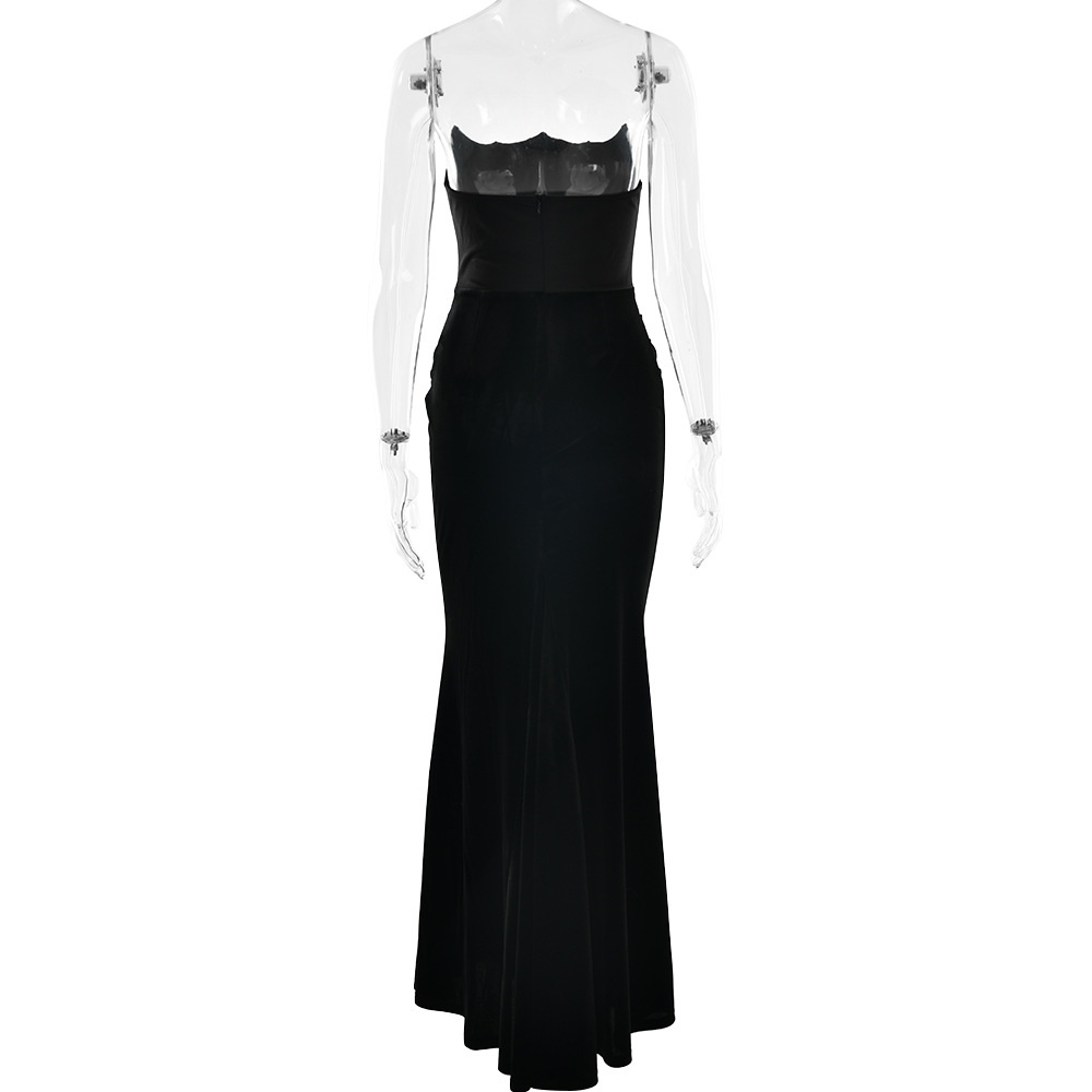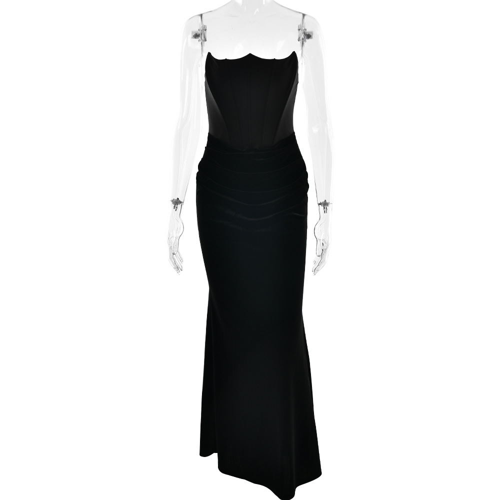 Sexy Elegant Tube Top Package Hip Maxi Dress Solid Color Stitching Sleeveless Slim Fit Dress