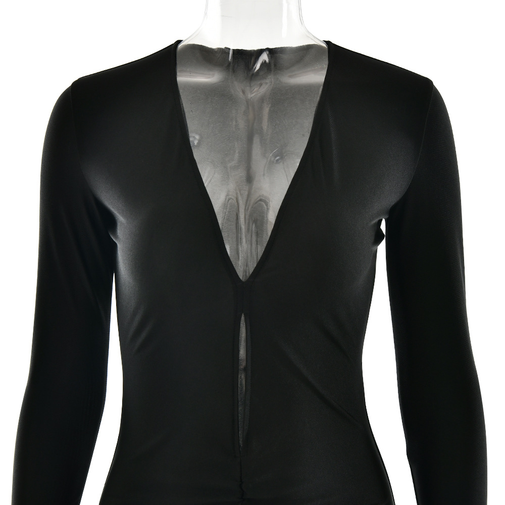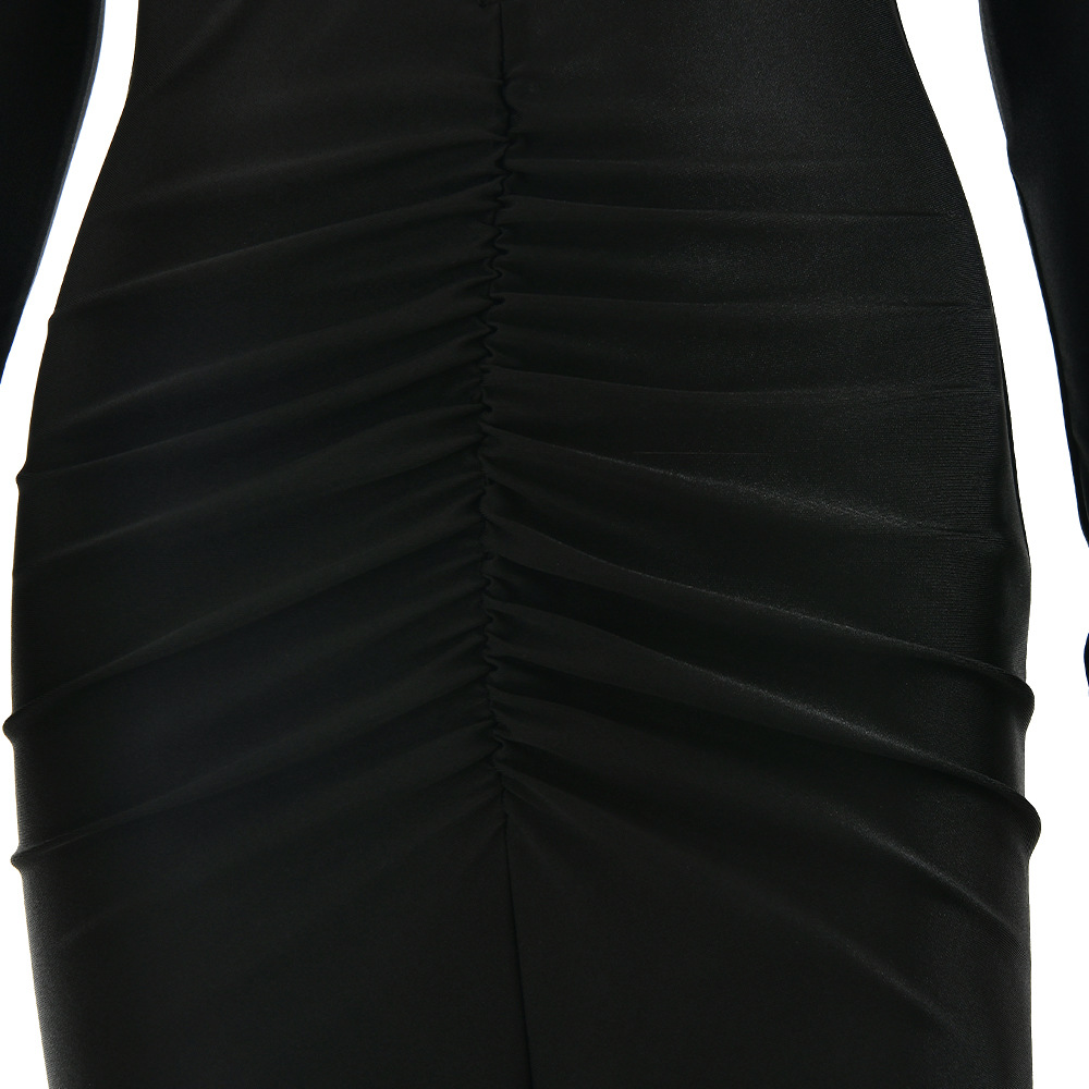 Sexy Pleated Hollow Out Cutout Slim Dress Arrival Long Sleeve Deep V Plunge neck Hip Dress