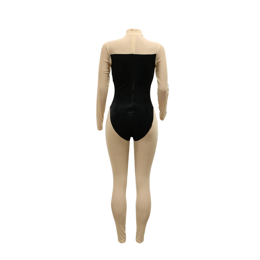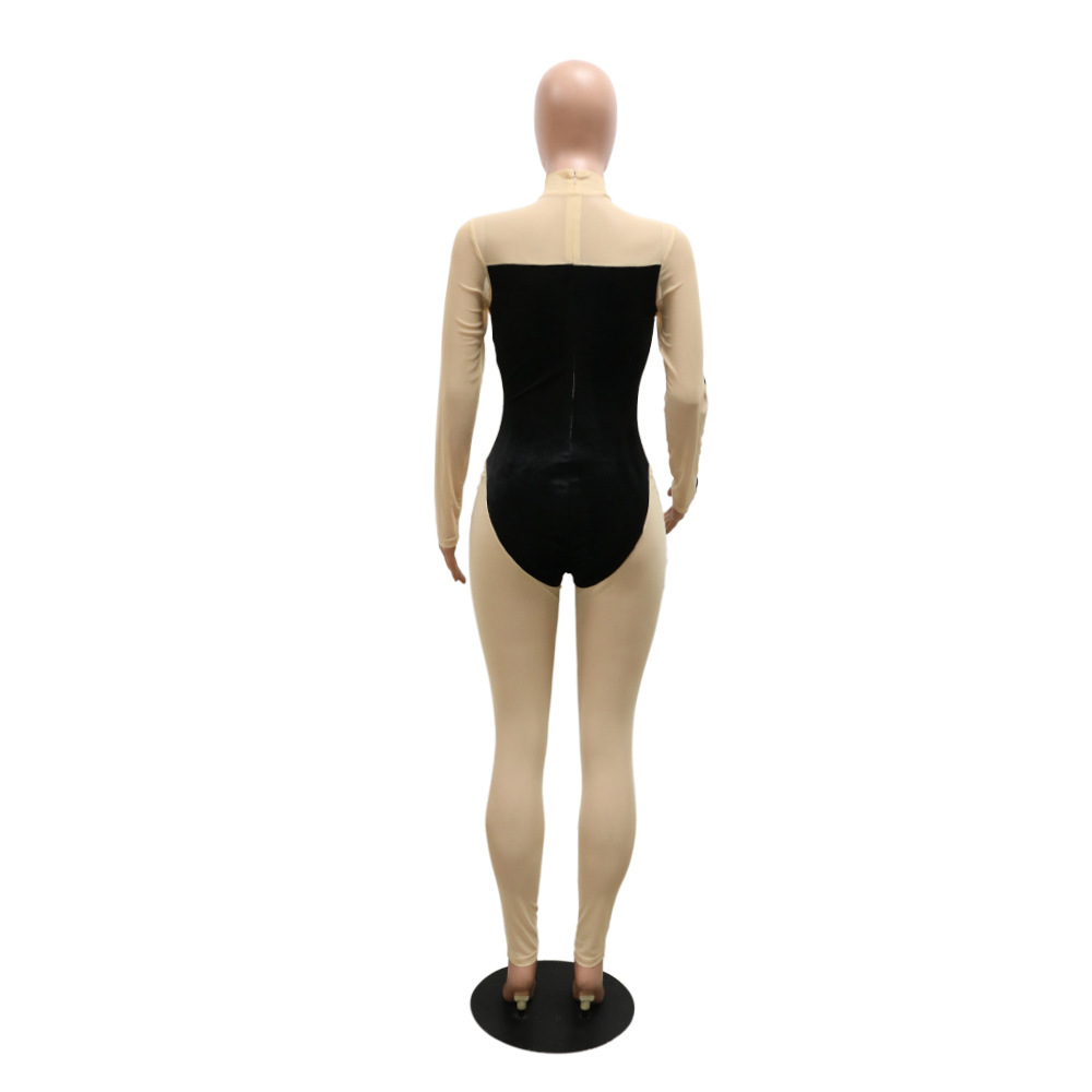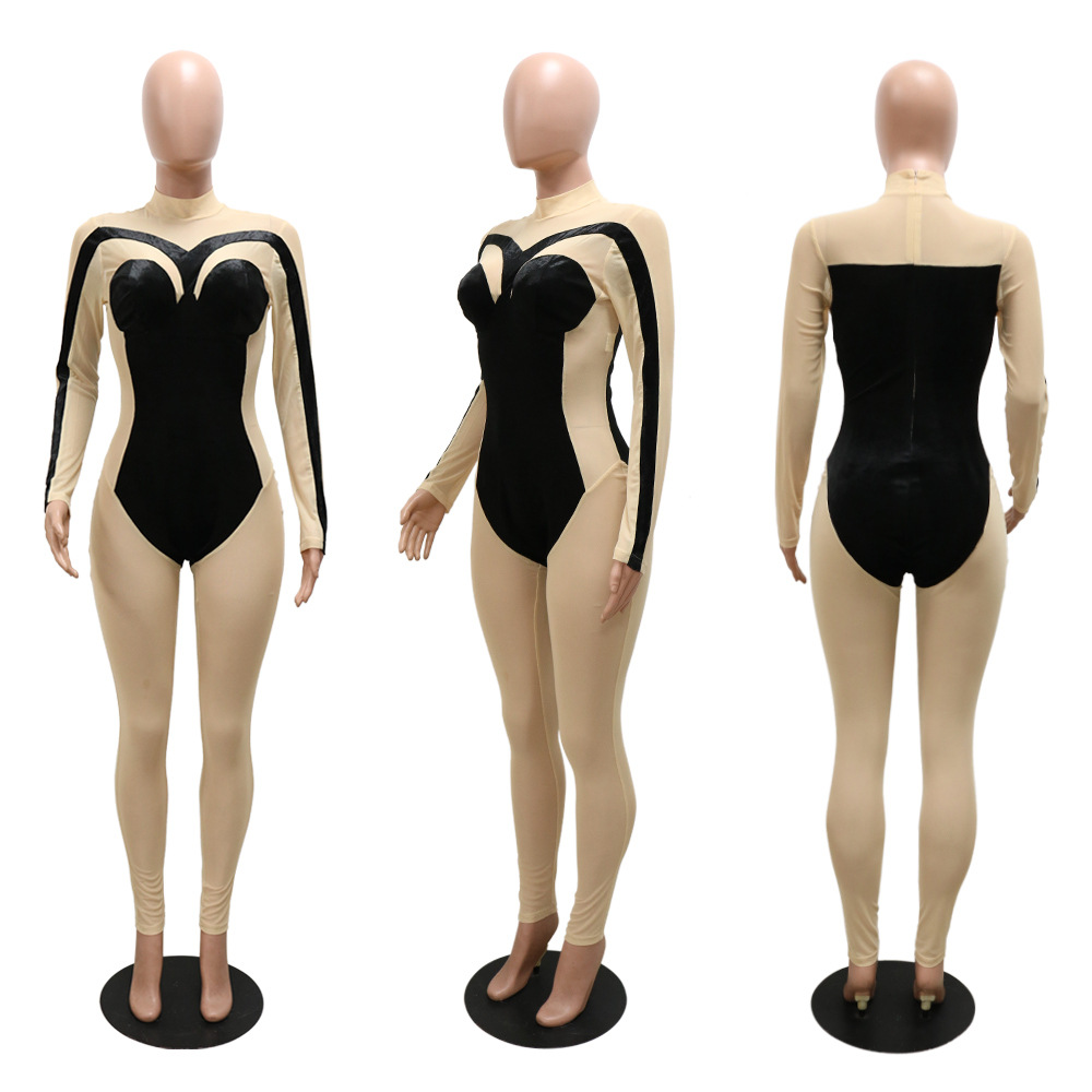 Sexy See-through Velvet Tight Slimming Sheath Jumpsuit
