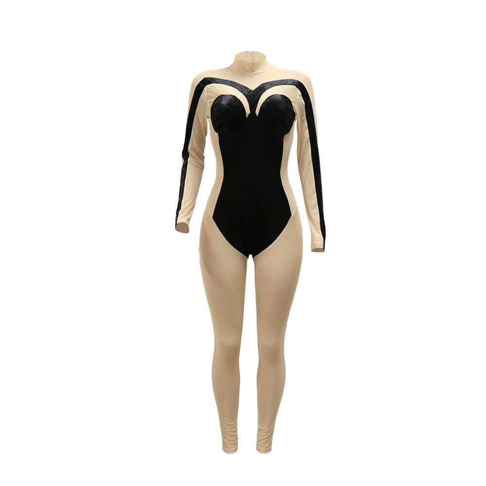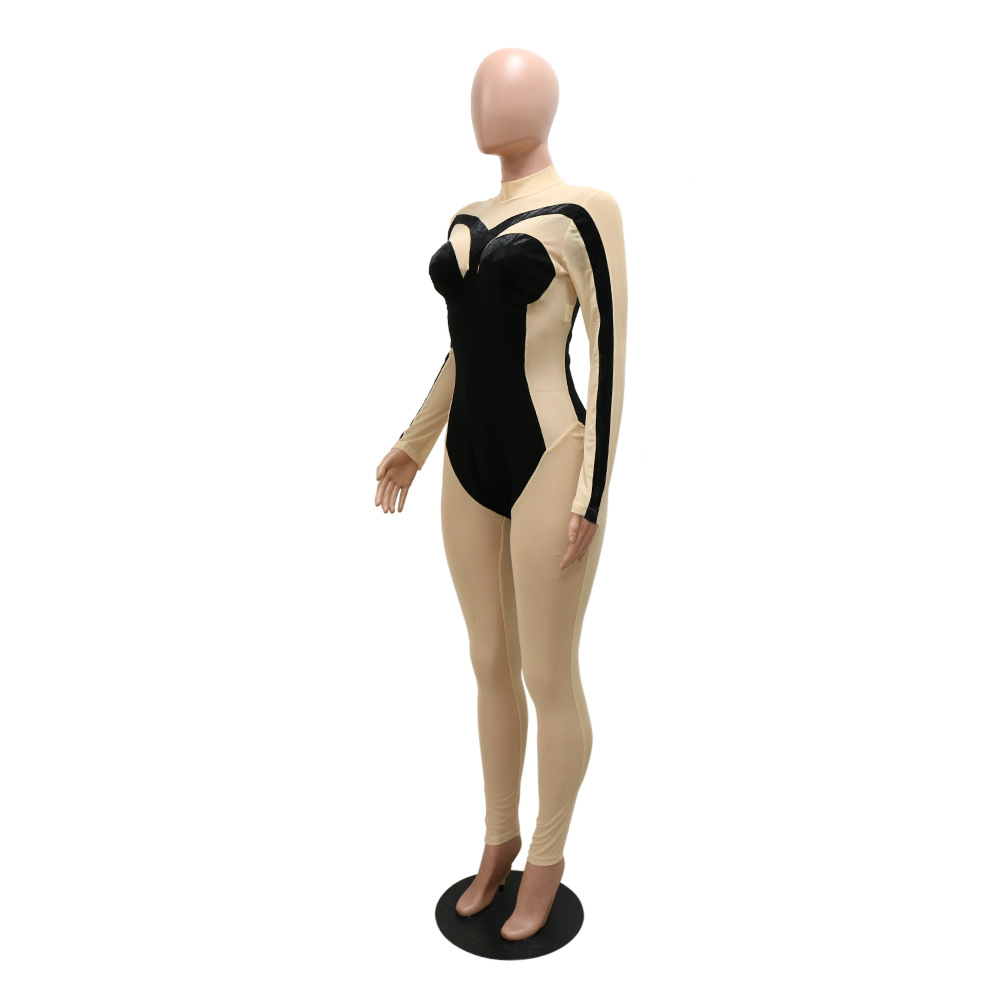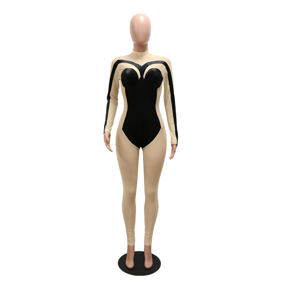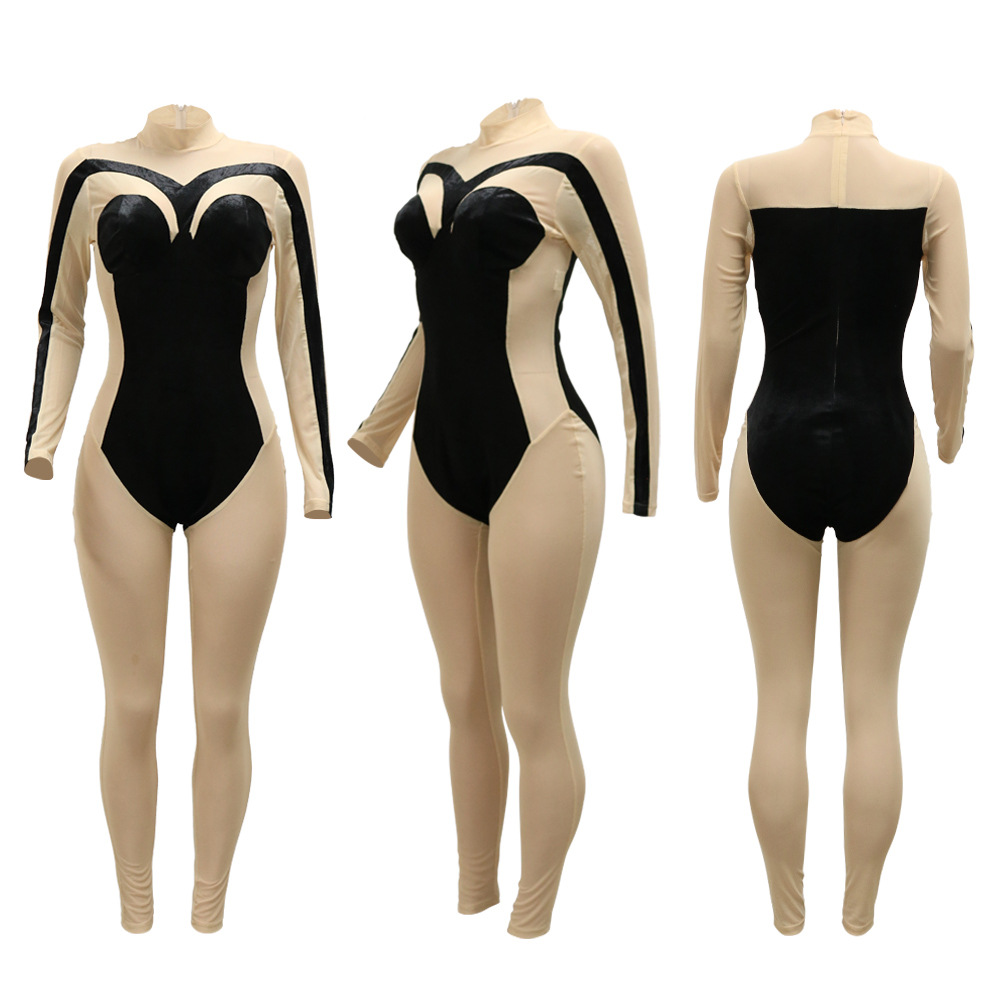 Sexy See-through Velvet Tight Slimming Sheath Jumpsuit