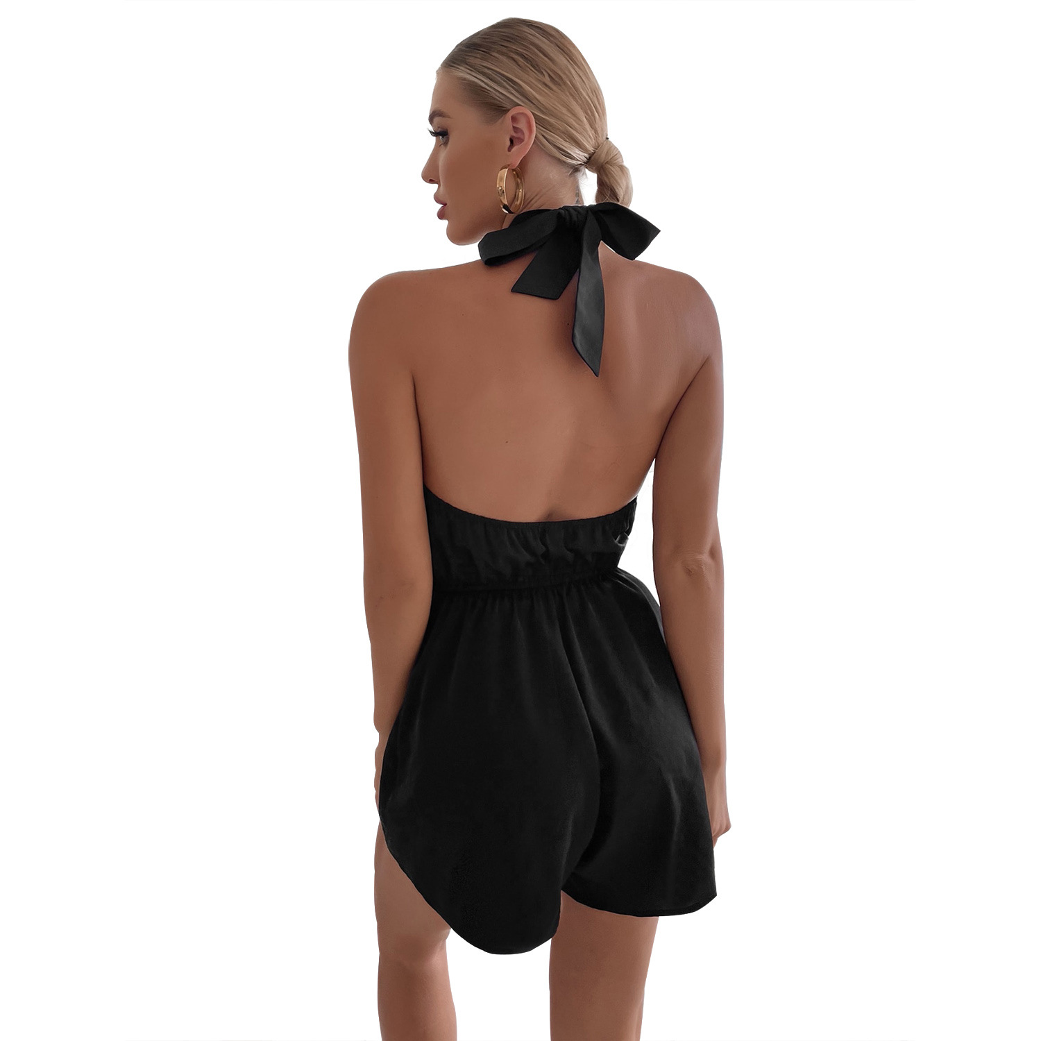 Sexy Siamese Shorts Women V neck off Shoulder Suspender Jumpsuit