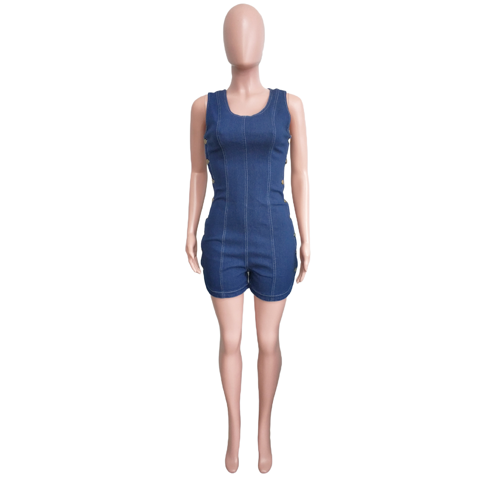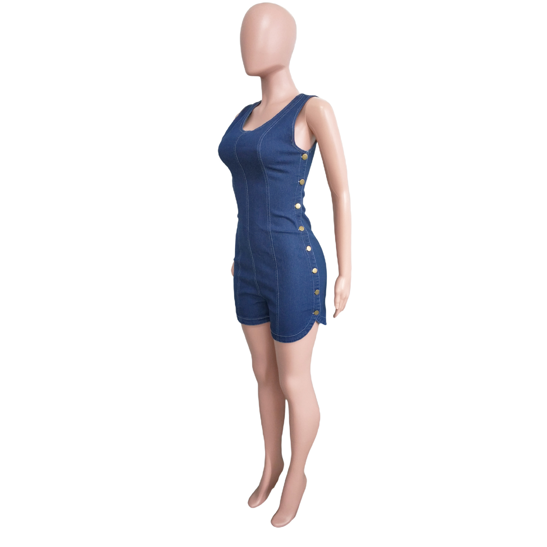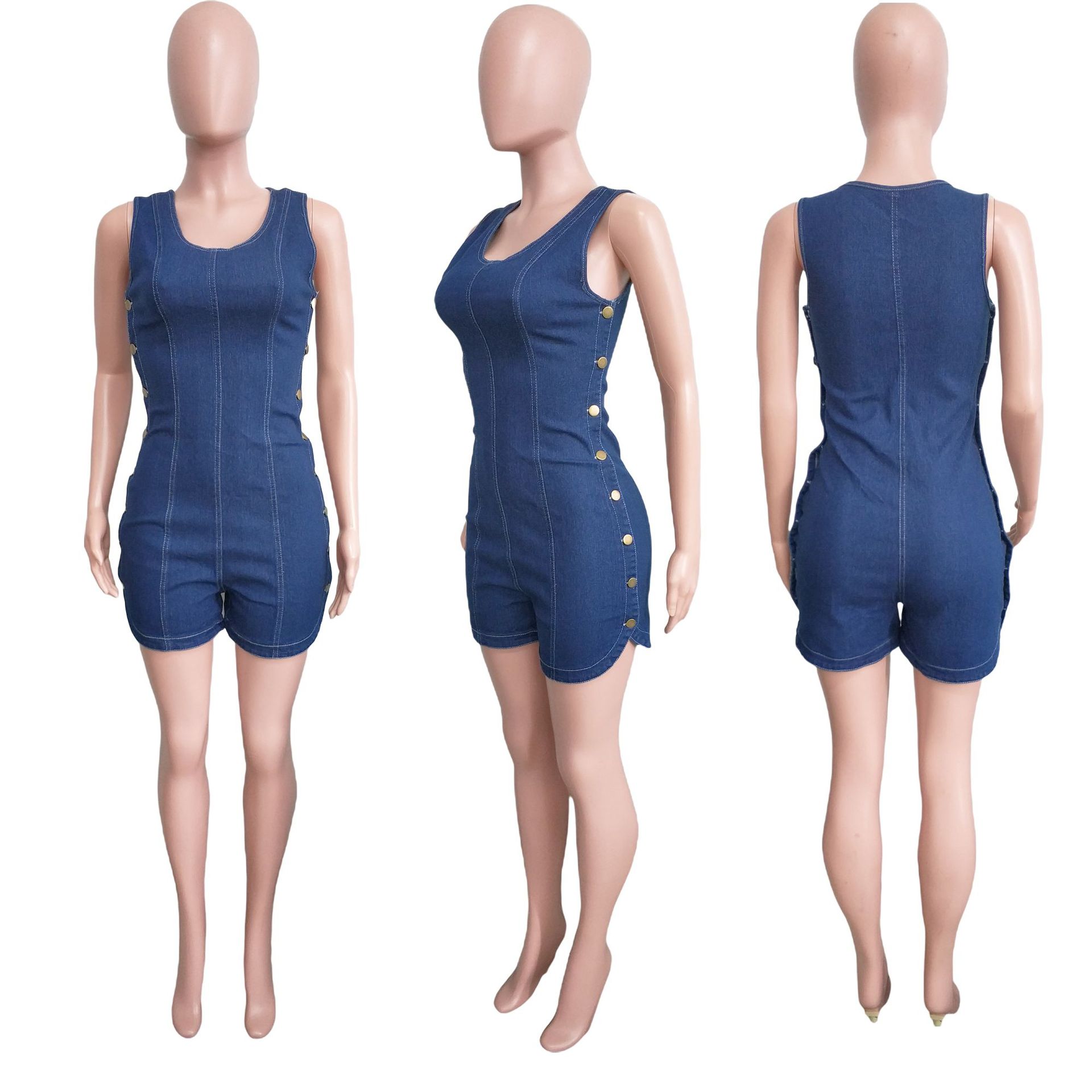 Sexy Slim Fit Denim Jumpsuit Double Breasted Sleeveless Denim Jumpsuit