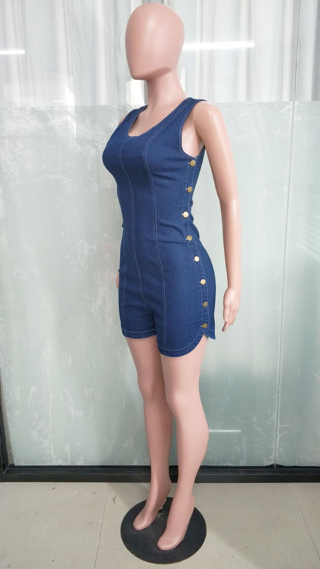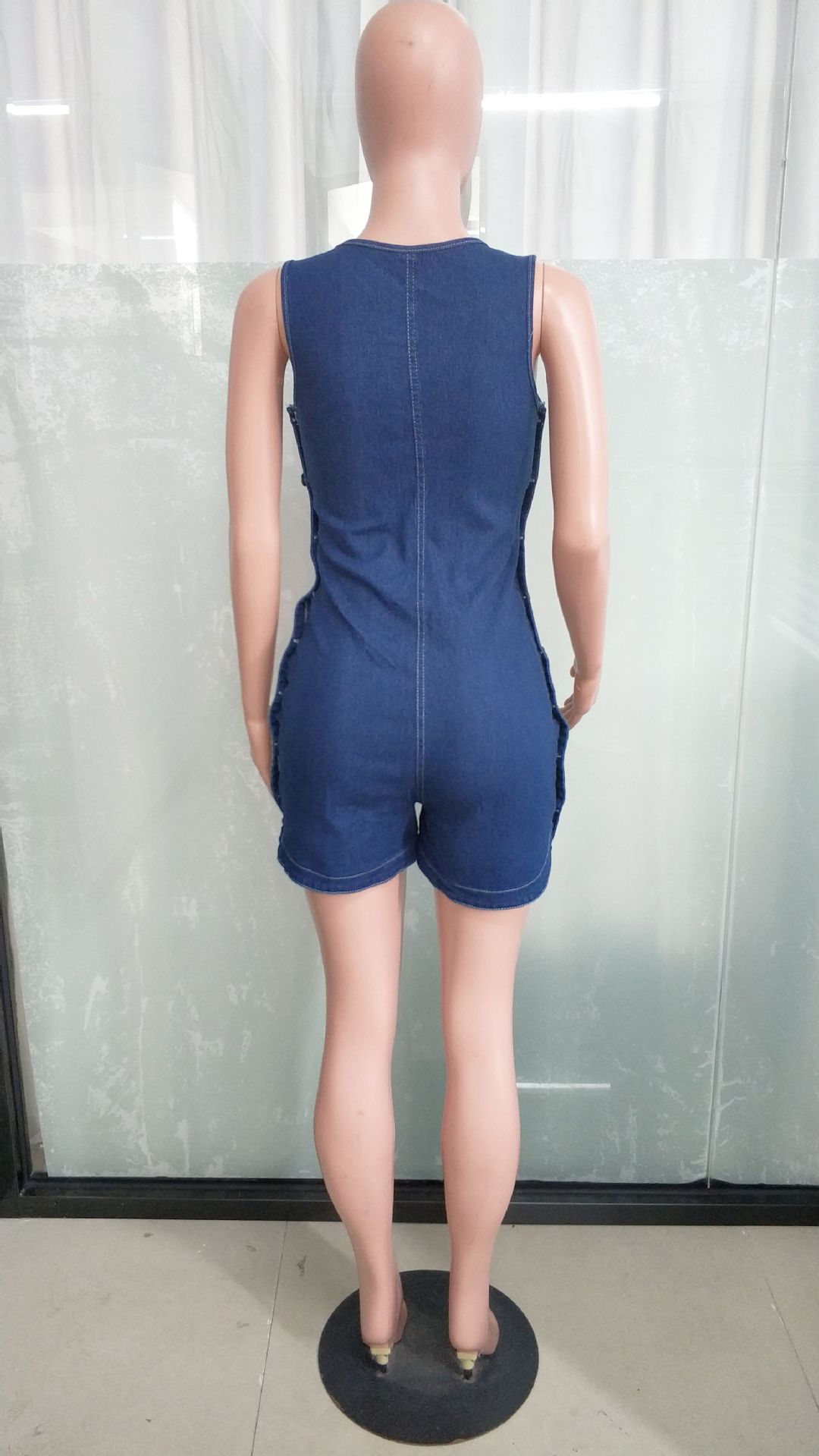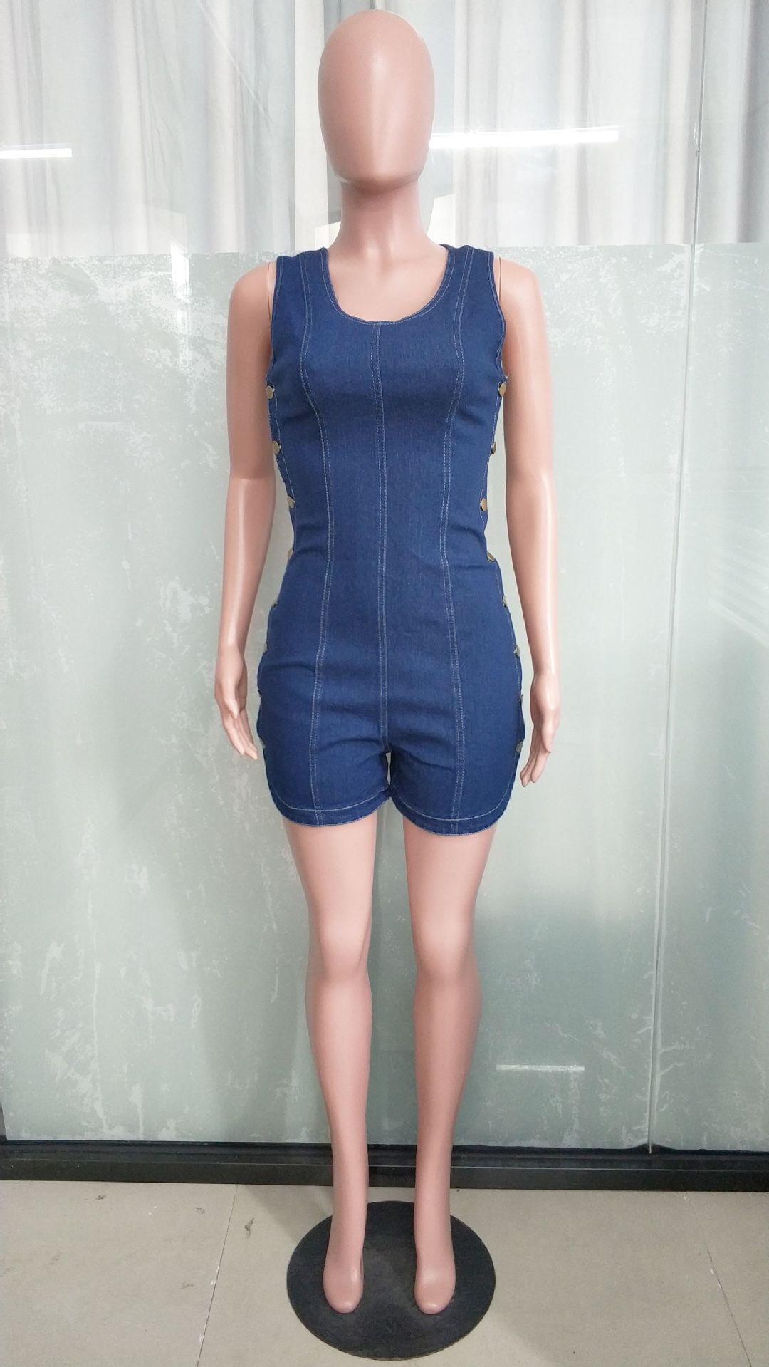 Sexy Slim Fit Denim Jumpsuit Double Breasted Sleeveless Denim Jumpsuit